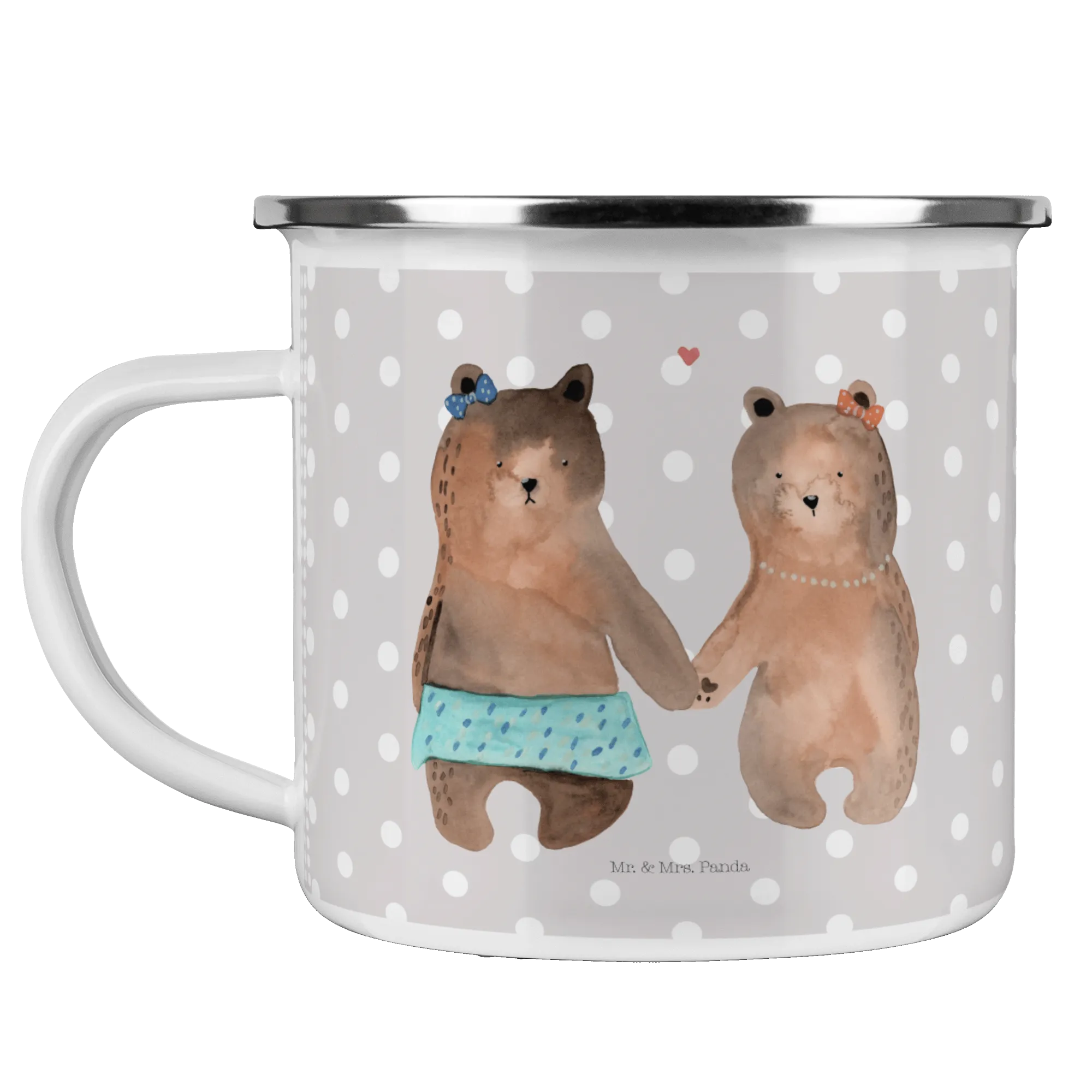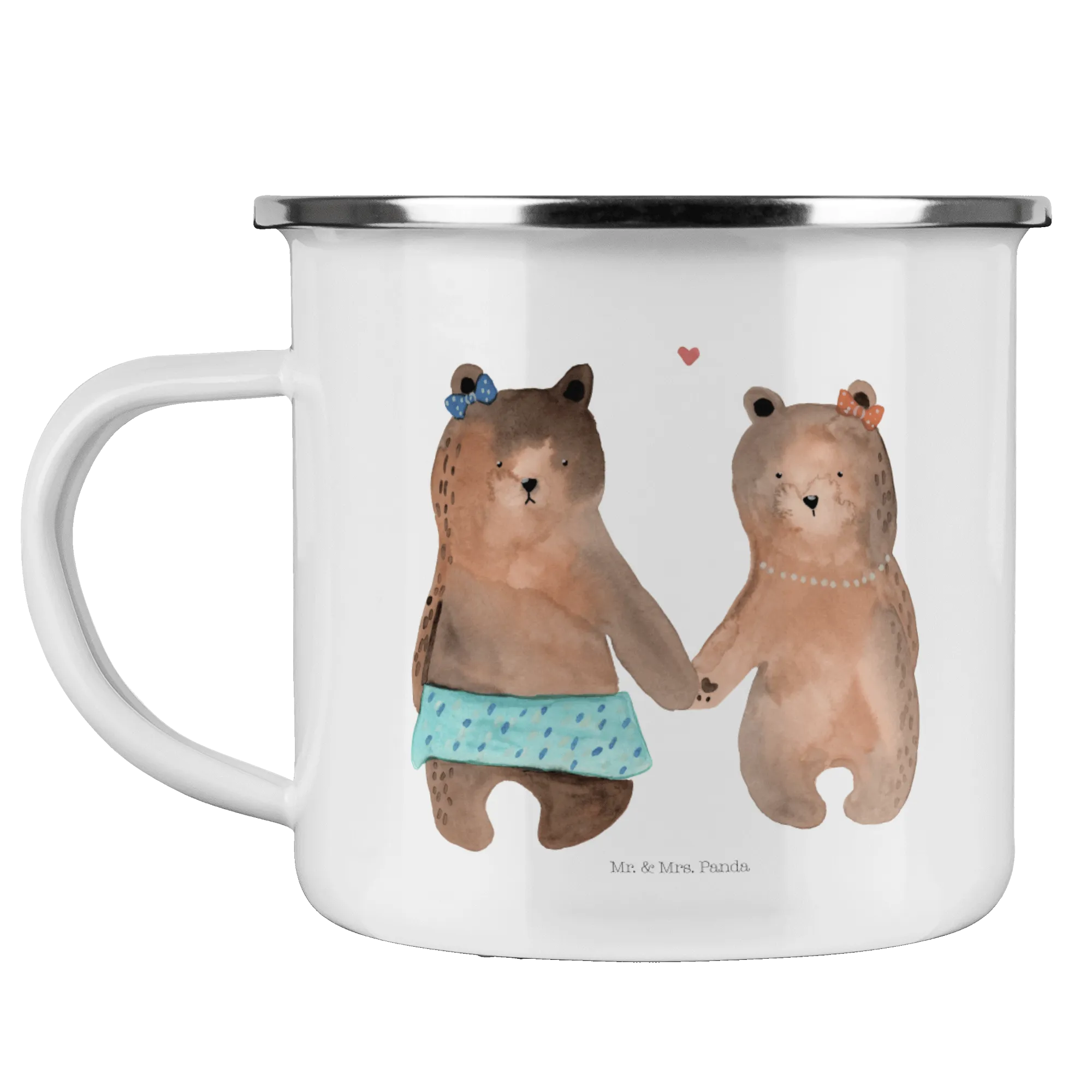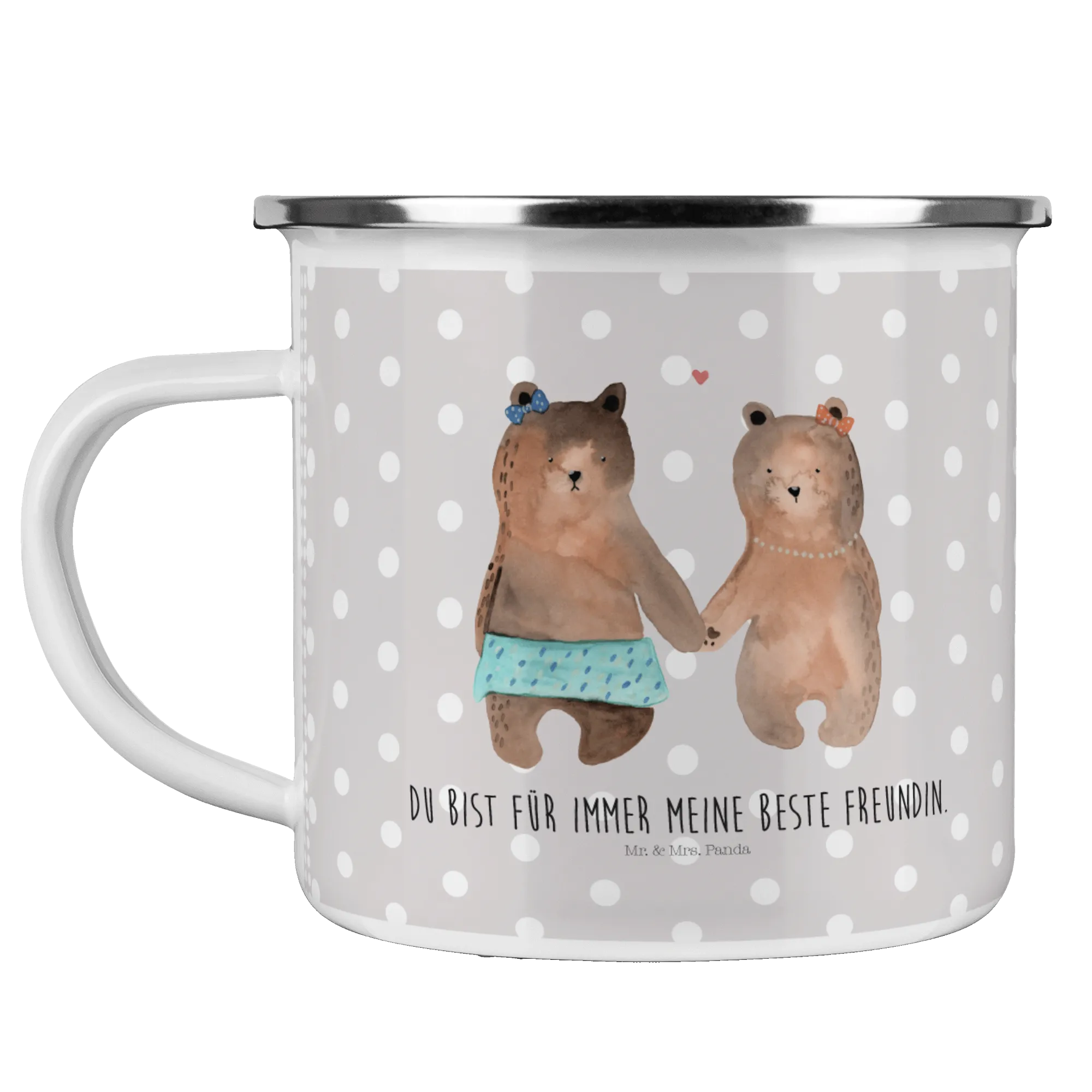 Die Camping Emaille Tasse "Bär Freundin" von Mr. & Mrs. Panda ist das perfekte Geschenk für all jene, die die Natur lieben und ihre besten Freunde schätzen!