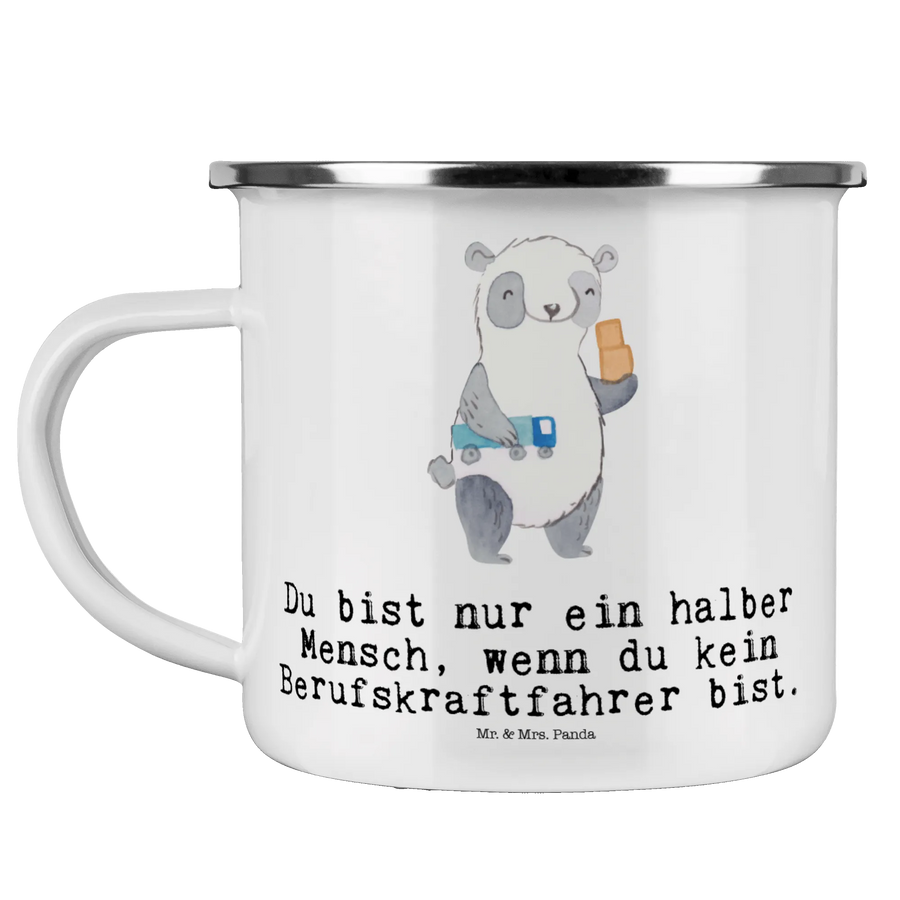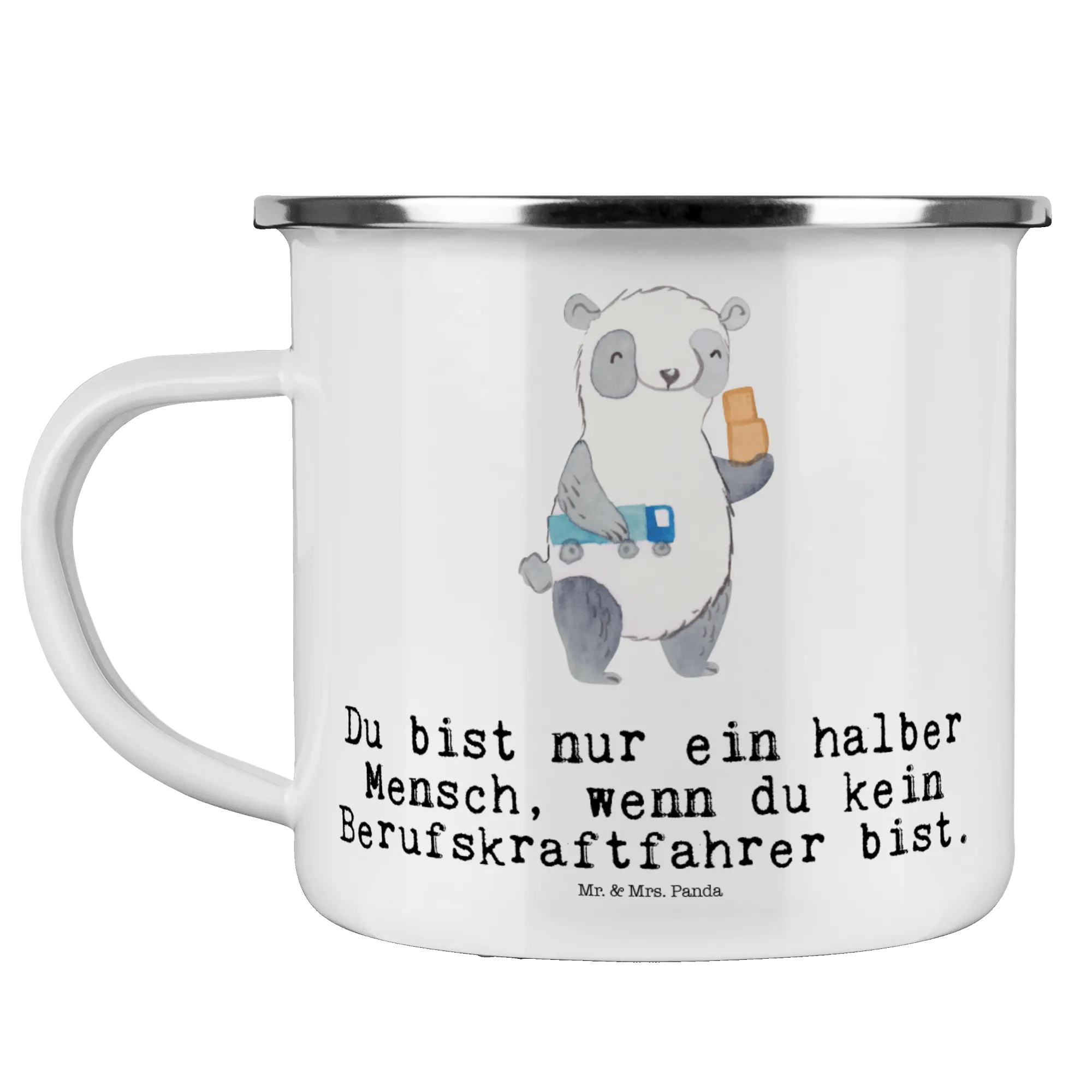 Die wunderschöne Camping Emaille Tasse "Berufskraftfahrer mit Herz" von Mr. & Mrs. Panda ist das perfekte Geschenk für all die leidenschaftlichen Berufskraftfahrer da draußen!