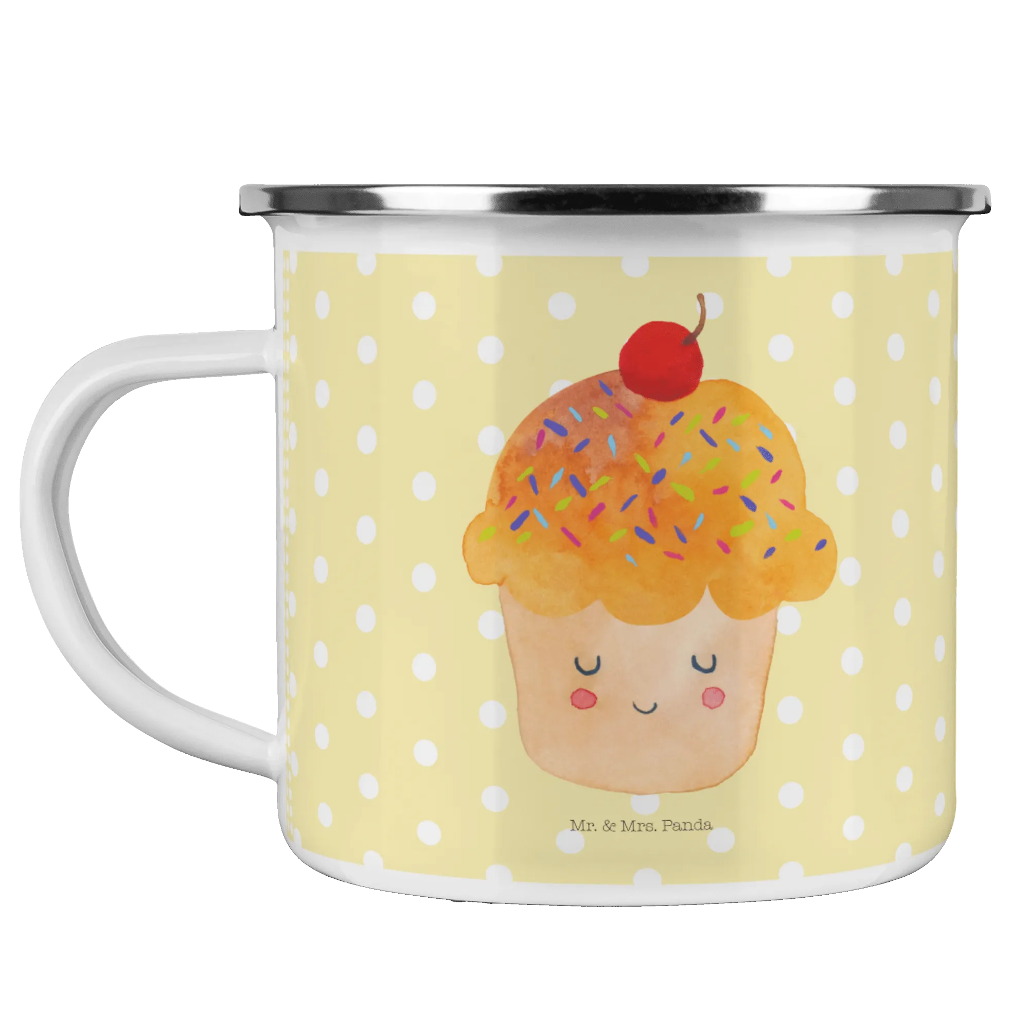 Die Camping Emaille Tasse mit dem süßen Cupcake-Motiv von Mr. & Mrs. Panda ist das perfekte Geschenk für all jene, die die Natur lieben und gleichzeitig ein Herz für süße Leckereien haben. Die Tasse ist nicht nur ein praktischer Begleiter beim Campen und Wandern, sondern auch ein echter Blickfang, der jeden Campingplatz aufhellt.