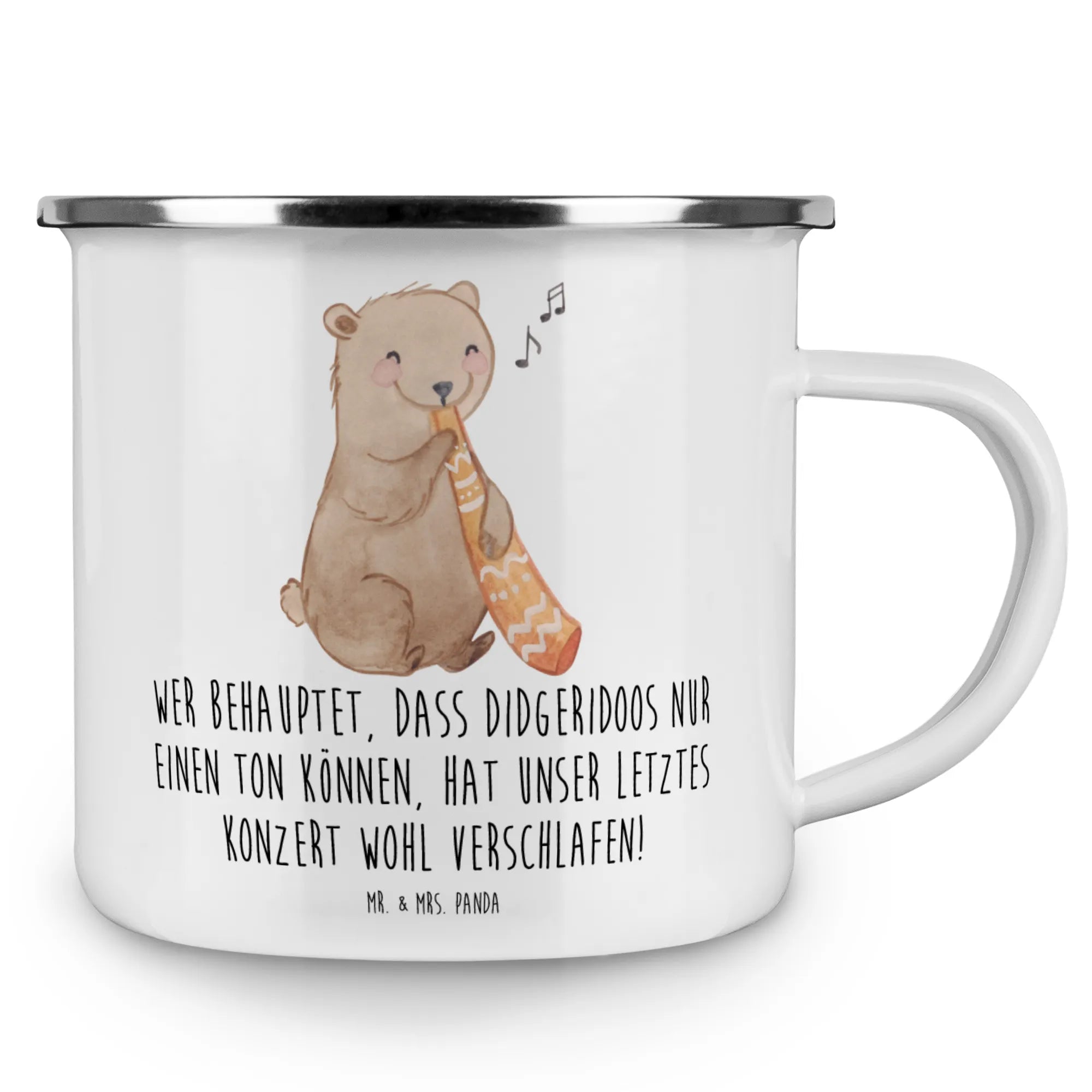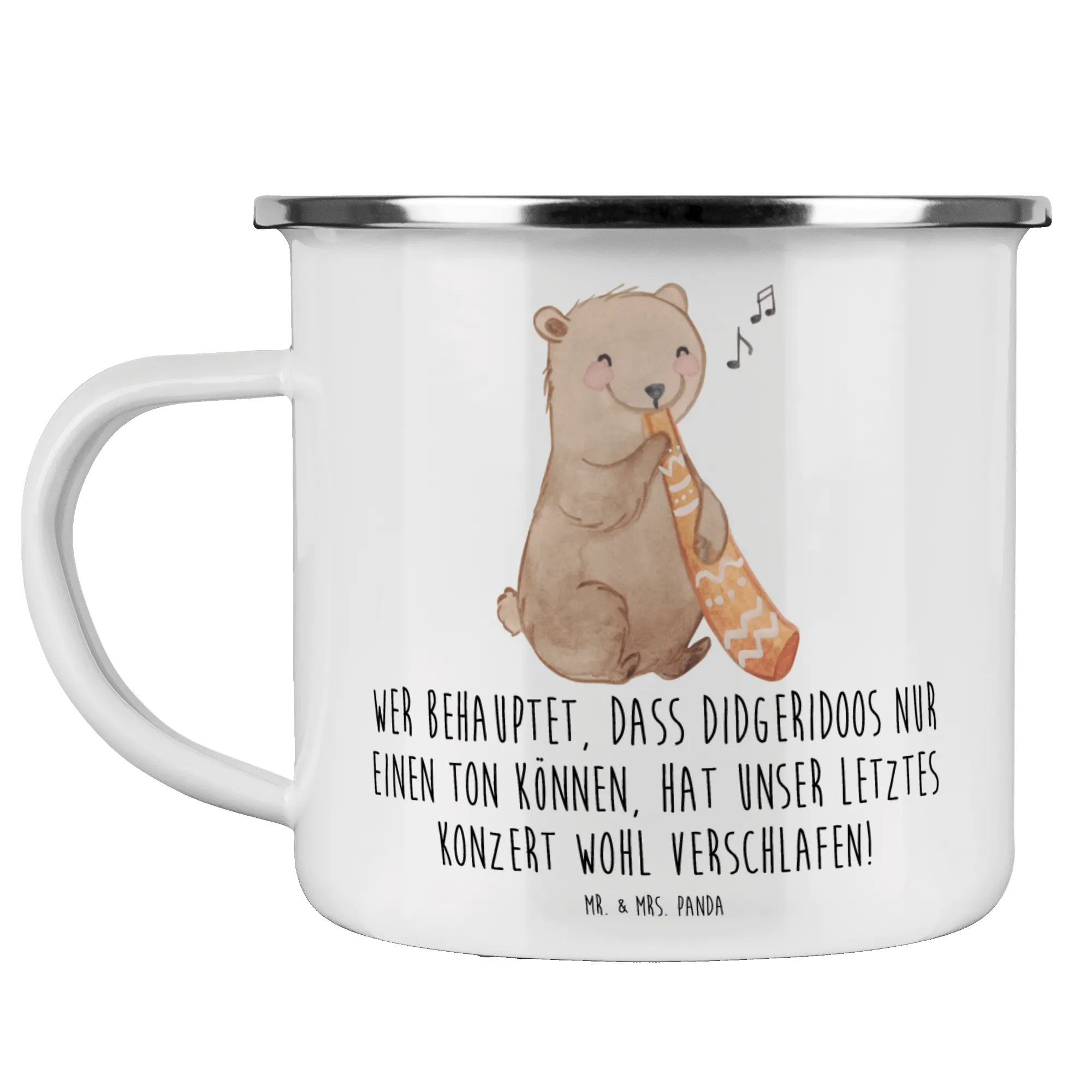 Die wunderschöne Camping Emaille Tasse mit dem einzigartigen Didgeridoo-Motiv von Mr. & Mrs. Panda ist der perfekte Begleiter für alle Musikliebhaber und Outdoor-Fans! Hergestellt aus kratzfester Emaille und mit einer Füllmenge von 300 ml ist sie ideal für heiße Getränke wie Kaffee oder Tee sowie für erfrischende Kaltgetänke. Ihre hohe Resistenz gegen Korrosion macht sie besonders langlebig, sodass Du sie bei all Deinen Abenteuern im Freien genießen kannst.