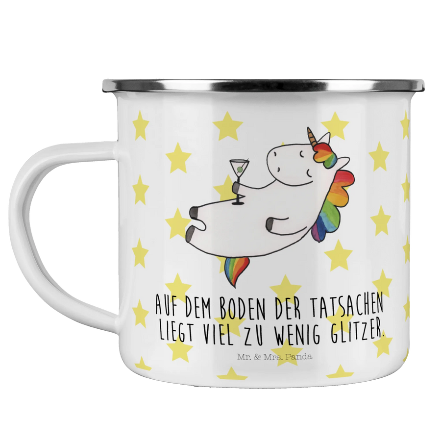 Entdecke die zauberhafte Welt des Campings mit der einzigartigen Camping Emaille Tasse Einhorn Cocktail von Mr. & Mrs. Panda! Diese wunderschöne und beständige Tasse ist der perfekte Begleiter für all Deine Abenteuer in der Natur und eignet sich ideal für Campingausflüge oder Wanderungen.