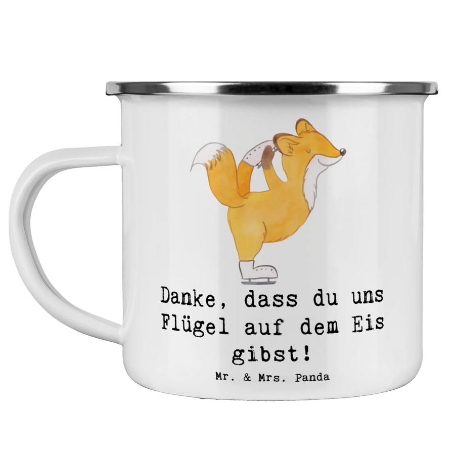 Entdecke die exquisite Camping Emaille Tasse mit dem bezaubernden Motiv "Danke, dass du uns Flügel auf dem Eis gibst!", die perfekt für jede Eiskunstlauf Trainerin ist. Diese Tasse ist mehr als nur ein Trinkgefäß – sie ist ein liebevolles Dankeschön für all die Hingabe und Unterstützung, die Deine Trainerin unzählige Male gegeben hat.