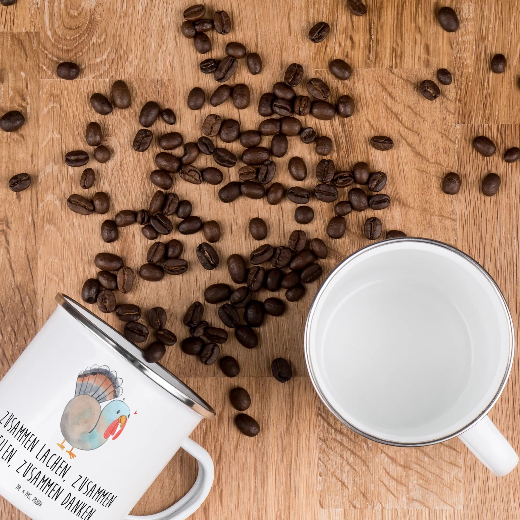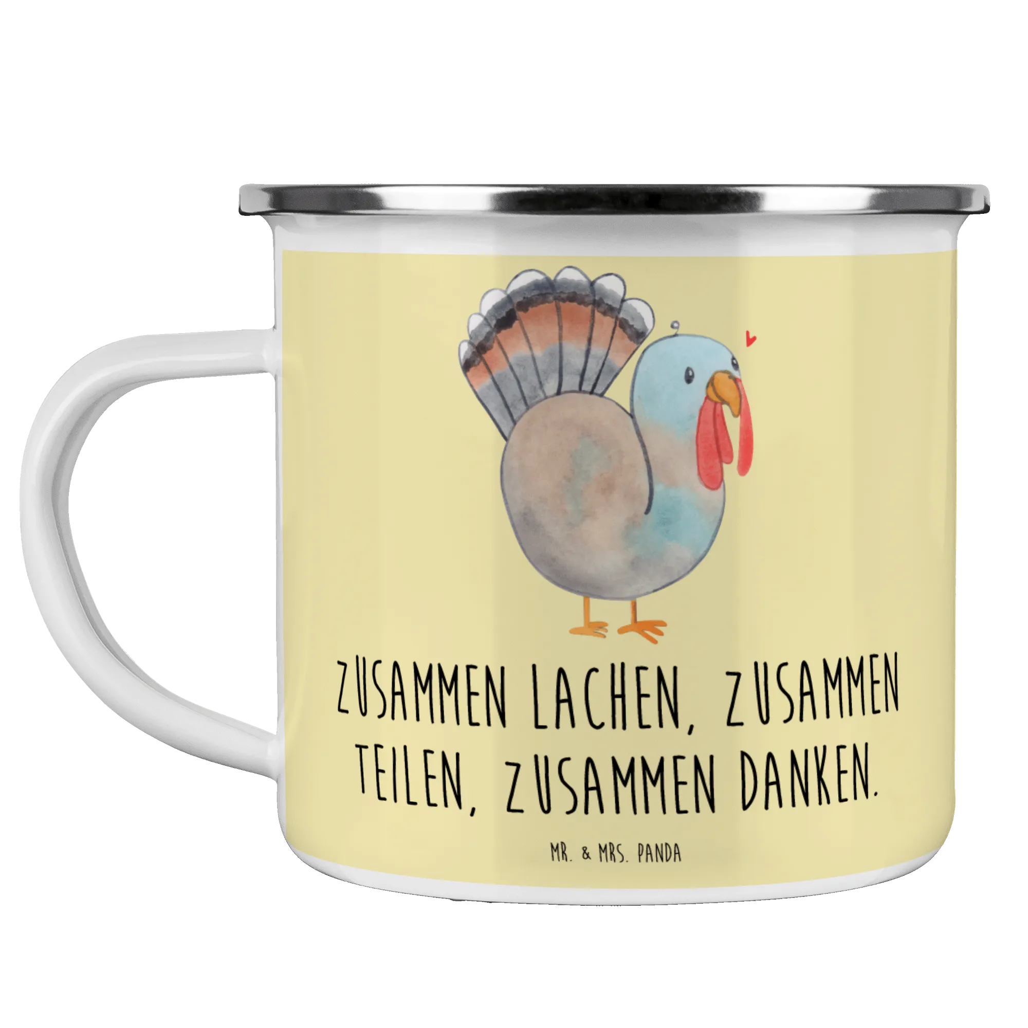 Die Kollektion Feiertage & Events von Mr. & Mrs. Panda bietet zahlreiche weitere Produkte, die perfekt für jedes Fest sind. Ob als Teil deiner eigenen Feierlichkeiten oder als großartiges Geschenk – diese Emaille Tasse bringt Freude und Wärme in die Herzen der Beschenkten. Entdecke die süßen Motive und Sprüche von Mr. & Mrs. Panda und lass dich von der schönen Botschaft dieser speziellen Tasse inspirieren. Diese perfekten Campingtassen sind dafür gemacht, Dankbarkeit und Freude zu verbreiten, und eignen sich wunderbar für all deine Outdoor-Abenteuer. Hol dir jetzt deine Camping Emaille Tasse für Erntedankfest & Thanksgiving!