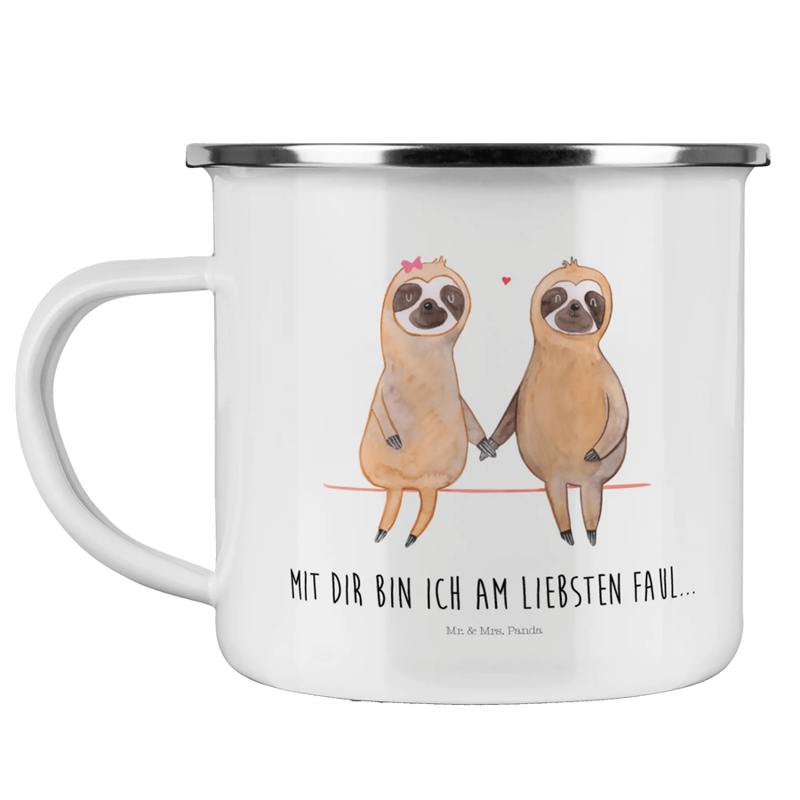 Camping Emaille Tasse Faultier Pärchen - mit Spruch - Weiß