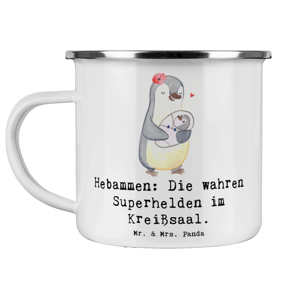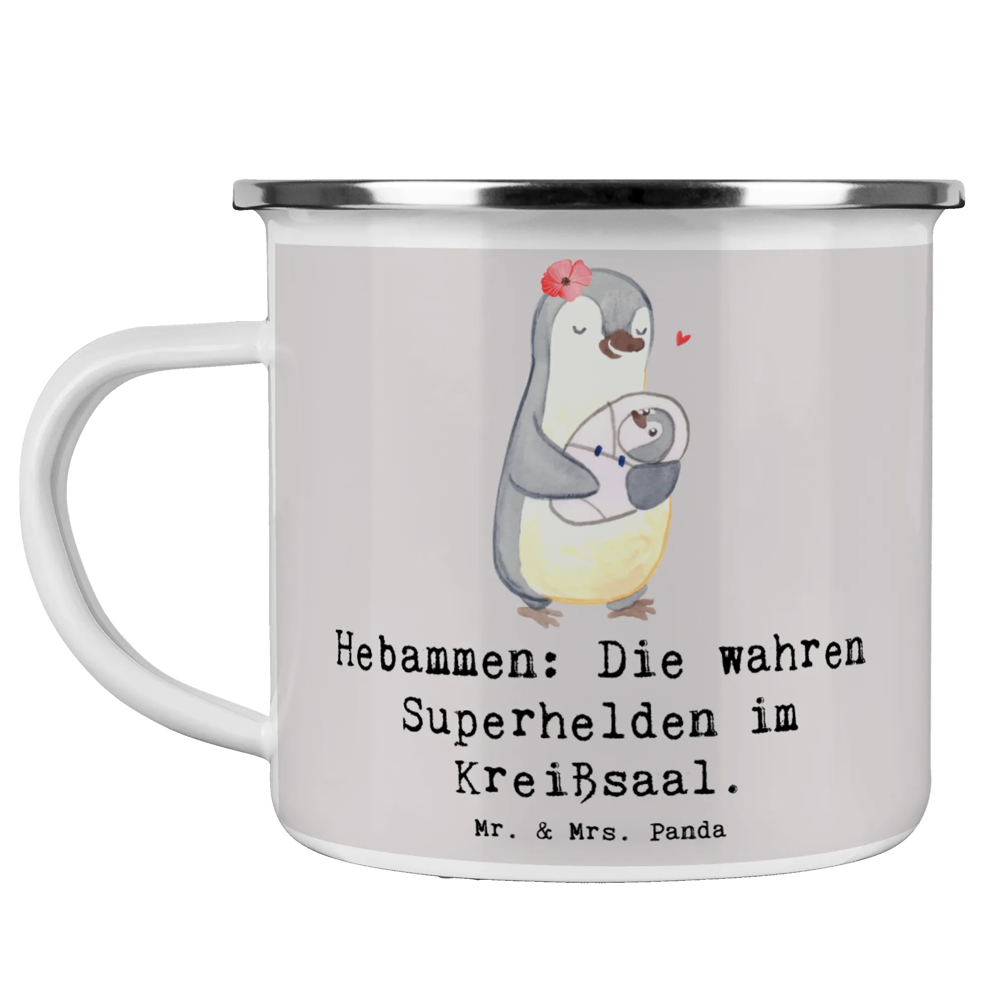 Du suchst nach dem perfekten Geschenk für eine Hebamme oder eine liebevolle Kollegin? Unsere Camping Emaille Tasse mit dem Spruch 'Hebammen: Die wahren Superhelden im Kreißsaal.' aus der Berufe Kollektion von Mr. & Mrs. Panda ist genau das Richtige!