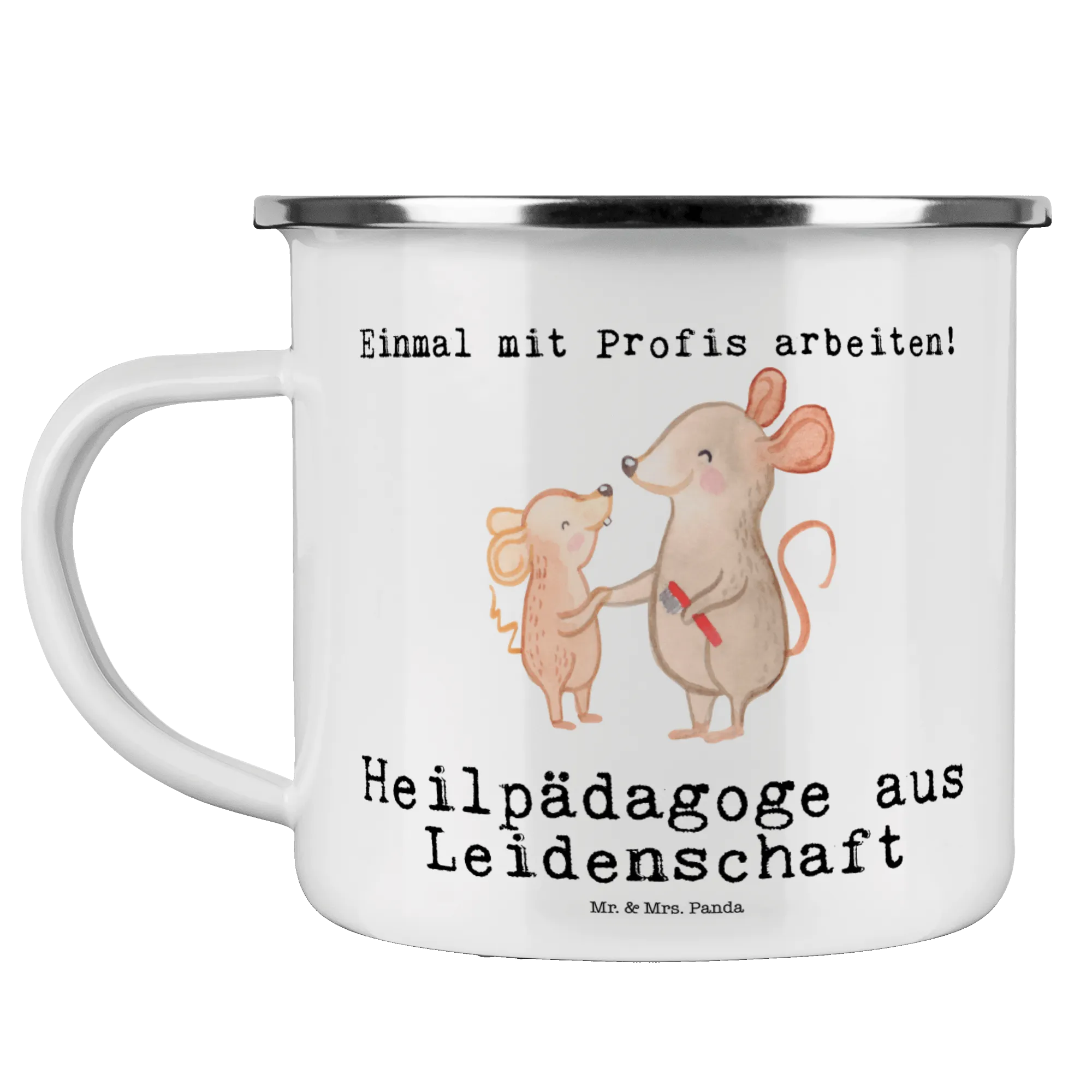 Entdecke die perfekte Camping Emaille Tasse mit dem Motiv "Heilpädagoge aus Leidenschaft" von Mr. & Mrs. Panda! Diese Tasse ist nicht nur ein praktisches Accessoire für Outdoor-Aktivitäten, sondern auch ein liebevolles Geschenk für Heilpädagogen.