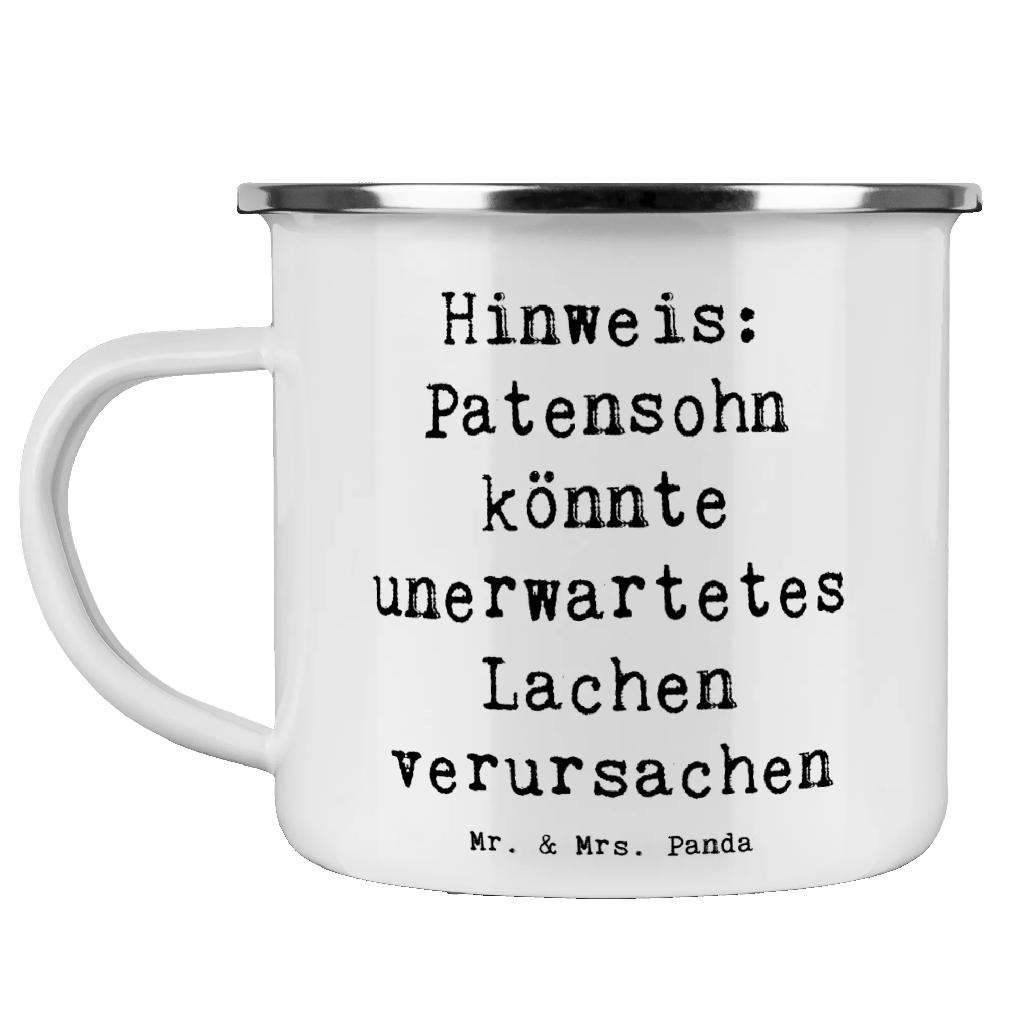 Camping Emaille Tasse Spruch Unerwartetes Lachen Patensohn