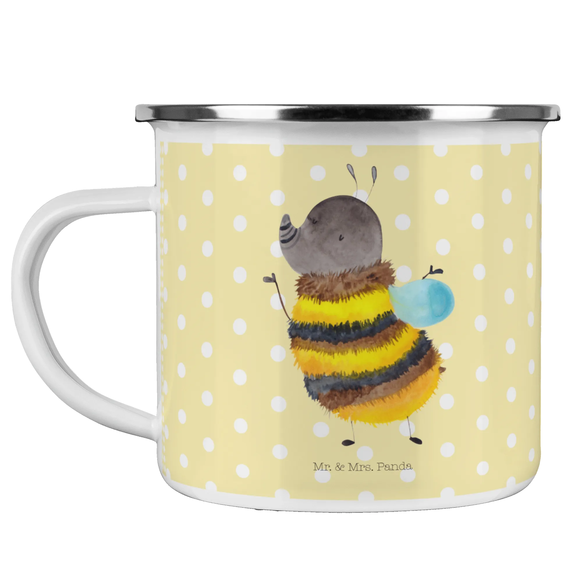 Du suchst nach einem besonderen Geschenk für einen Campingliebhaber oder für dich selbst? Dann ist die Camping Emaille Tasse "Hummel flauschig" aus der Small World Kollektion von Mr. & Mrs. Panda genau das Richtige! Mit ihrer fröhlichen Hummel, die mit ihrem flauschigen Fell und dem schönen Gelb und Schwarz begeistert, bringt sie nicht nur gute Laune, sondern ist auch äußerst praktisch für den Outdoor-Einsatz.