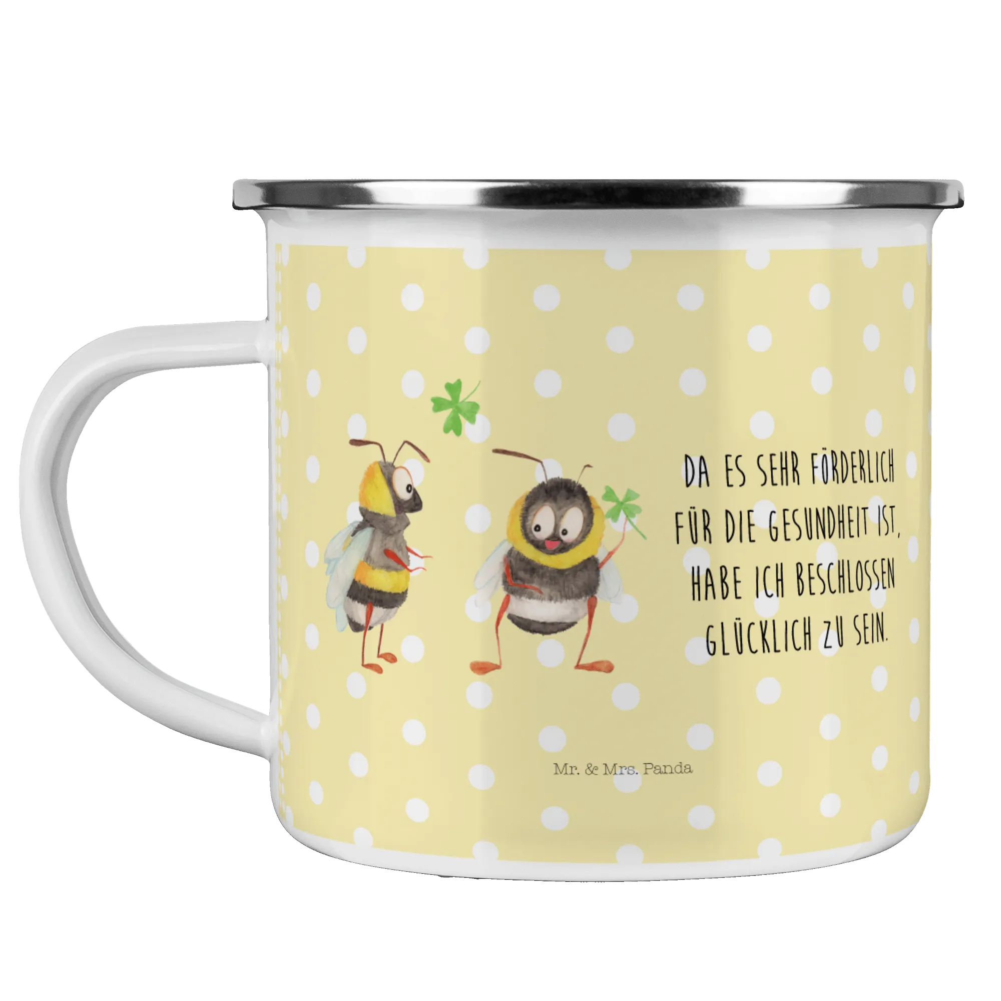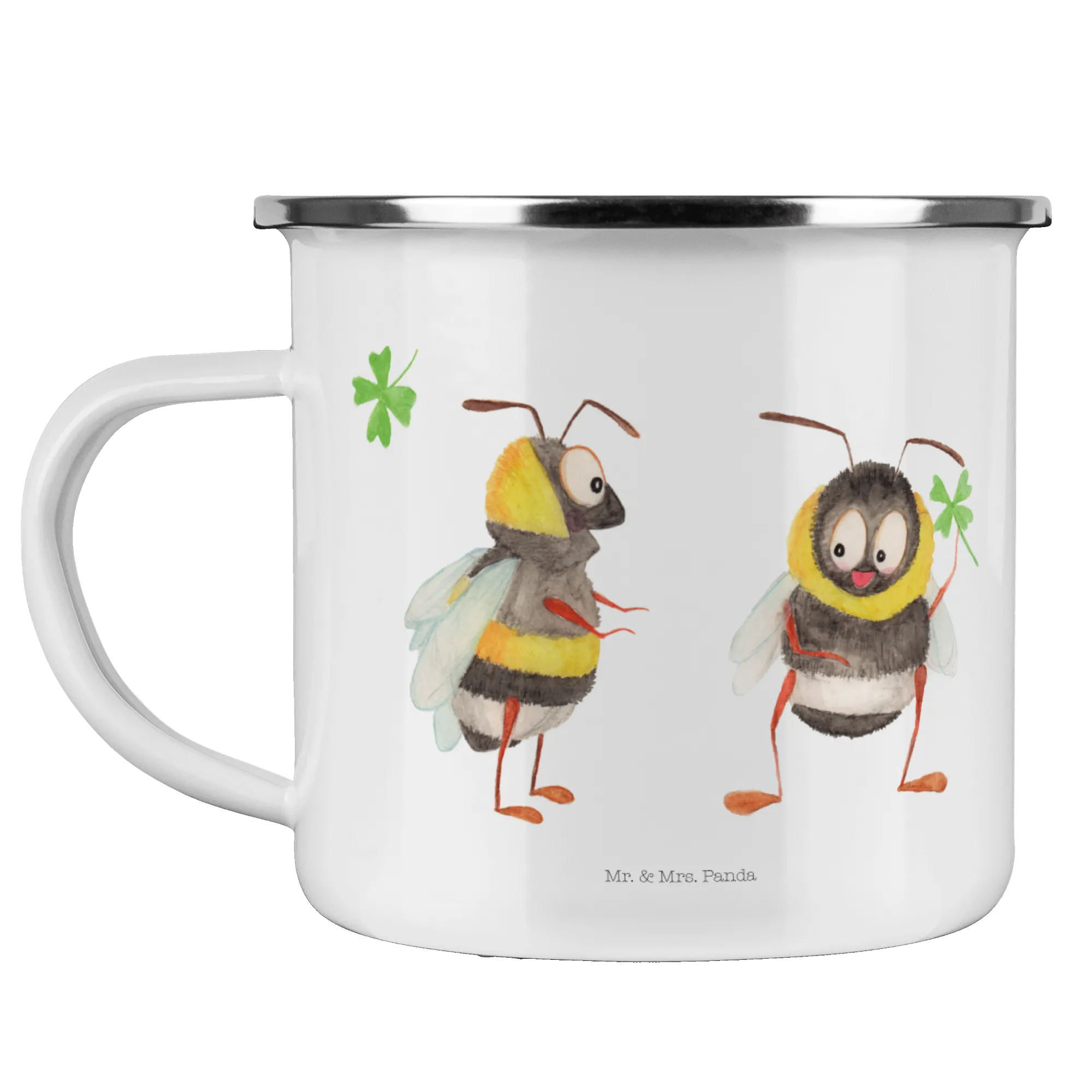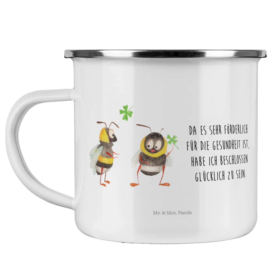 Du suchst nach dem perfekten Geschenk für Outdoor-Liebhaber oder für dich selbst? Die Camping Emaille Tasse "Hummeln mit Kleeblatt" aus der bezaubernden Small World Kollektion von Mr. & Mrs. Panda ist genau das Richtige. Diese wunderschöne und beständige Metalltasse ist nicht nur superpraktisch, sondern auch ein echter Blickfang!