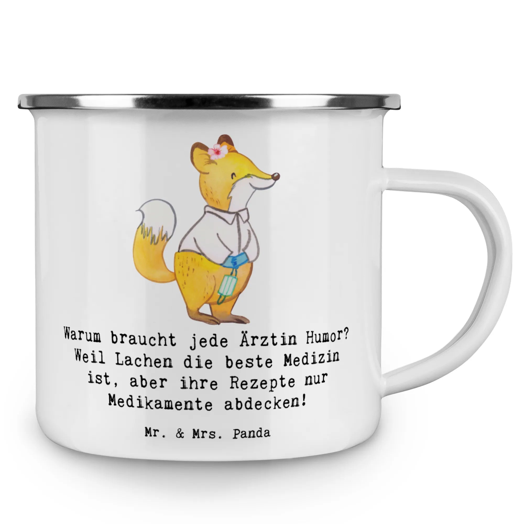 Die wunderschöne Camping Emaille Tasse "Ärztin" von Mr. & Mrs. Panda ist das ideale Geschenk für alle kreativen Herzen, die in der Welt der Medizin arbeiten! Egal, ob du selbst Ärztin bist oder einer besonderen Ärztin eine Freude machen möchtest, diese Tasse bringt nicht nur Farbe in deinen Alltag, sondern auch eine Portion Humor! Mit dem tollen Spruch "Warum braucht jede Ärztin Humor? Weil Lachen die beste Medizin ist, aber ihre Rezepte nur Medikamente abdecken!" zaubert diese Tasse jeden Morgen ein Lächeln auf dein Gesicht.