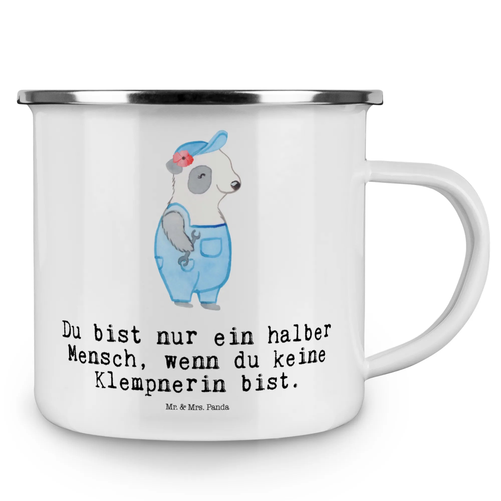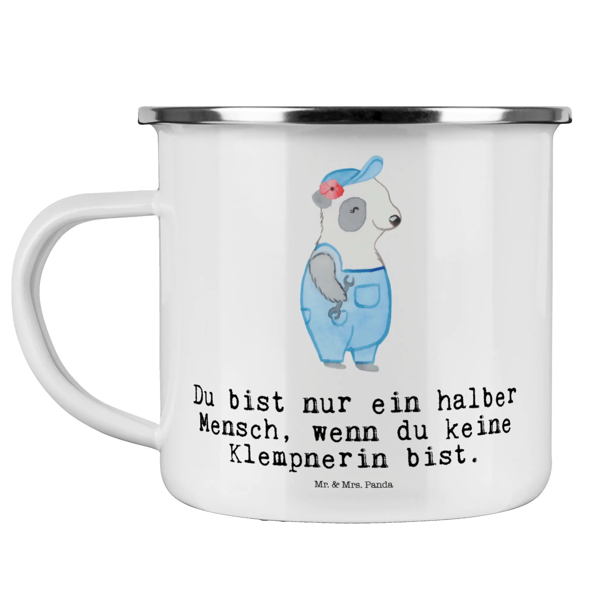 Die Camping Emaille Tasse "Klempnerin mit Herz" von Mr. & Mrs. Panda ist das perfekte Geschenk für alle, die den Beruf der Klempnerin mit Leidenschaft und Herz ausüben. Diese wunderbare Tasse ist nicht nur ein praktischer Begleiter für Campingausflüge oder Wanderungen, sondern auch ein liebevolles Geschenk für Berufsabschiede, Jubiläen oder einfach als Dankeschön an Kolleginnen und Kollegen aus dem Handwerk.
