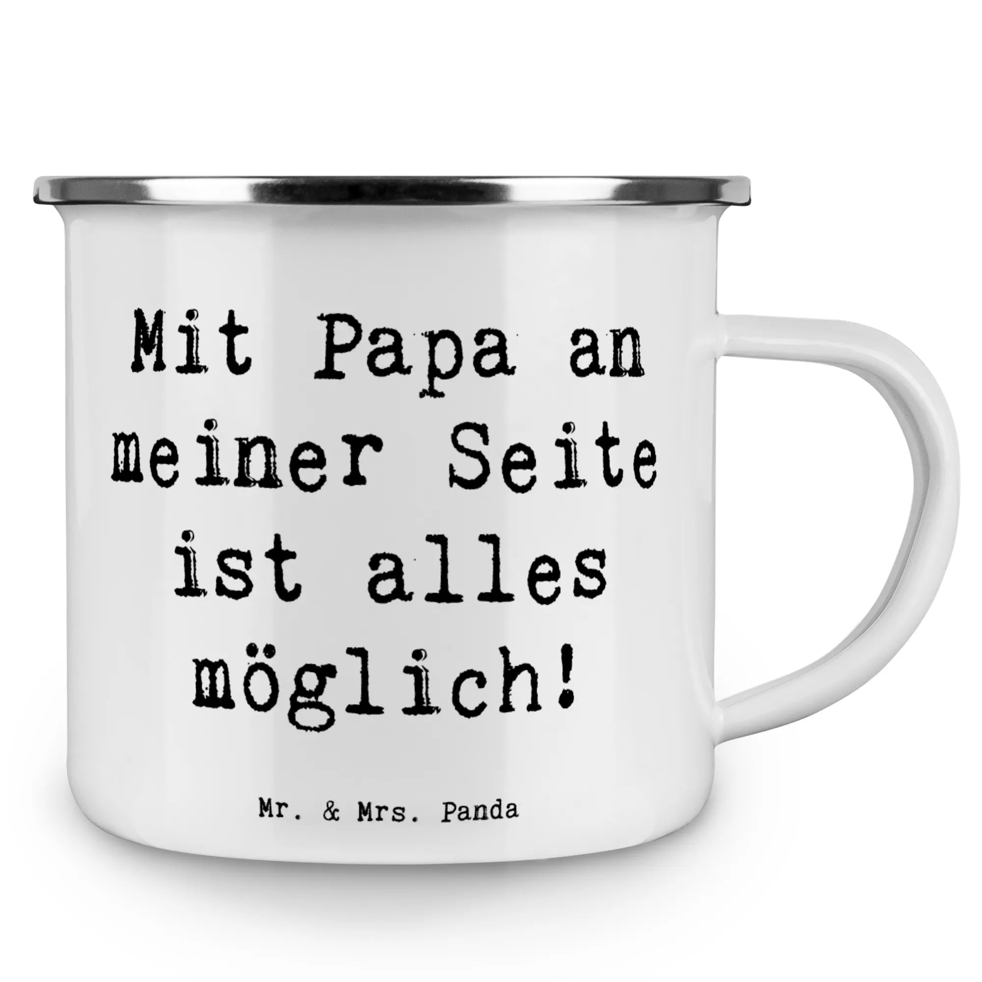 Die wunderschöne Camping Emaille Tasse "Papa" aus der Dankes-Kollektion von Mr. & Mrs. Panda ist das perfekte Geschenk für alle, die ihrem Papa eine besondere Freude machen oder einfach mal Danke sagen möchten. Mit dem süßen Spruch "Mit Papa an meiner Seite ist alles möglich!" wird diese Tasse zu einem einzigartigen Begleiter bei Outdoor-Abenteuern und gemütlichen Kaffeepausen.