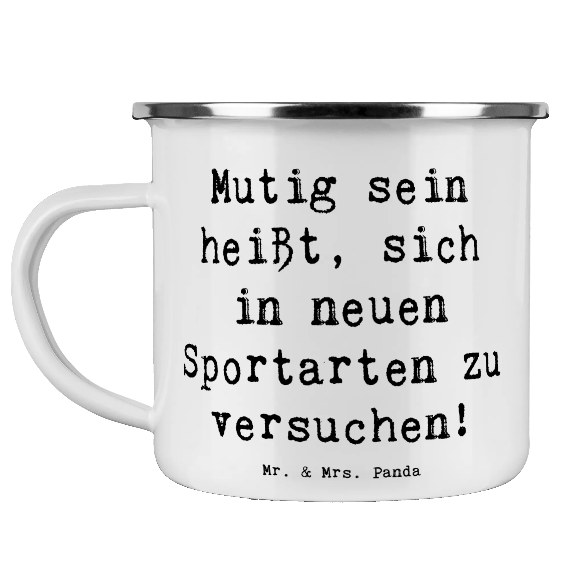 Mit dem tollen Motiv 'Sich in einer neuen Sportart versuchen' und dem dazugehörigen Spruch 'Mutig sein heißt, sich in neuen Sportarten zu versuchen!' bringt diese Tasse Freude und Motivation. Sie ist aus kratzfester Emaille gefertigt und somit besonders langlebig. 💪