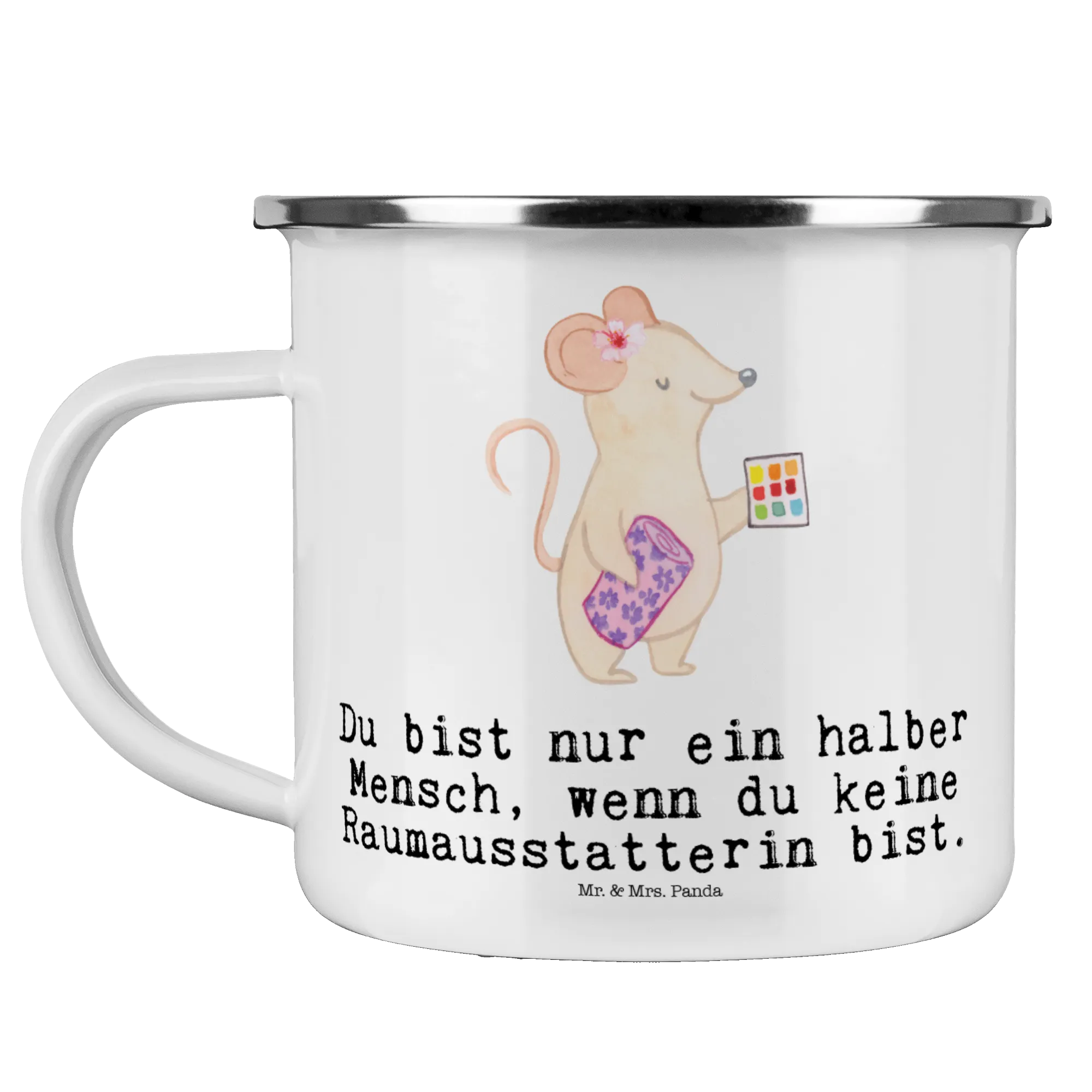 Mit jeder Tasse, die du verschenkst, zeigst du Wertschätzung und Dankbarkeit. Die Berufe Kollektion von Mr. & Mrs. Panda ist eine kreative Art, um deinen Freunden oder Kollegen zu danken und sie zu motivieren. Also schnapp dir die Camping Emaille Tasse "Raumausstatterin mit Herz" und mache jemandem eine ganz besondere Freude! Die Tasse verbindet praktische Anwendung mit einem persönlichen und gleichzeitig humorvollen Ansatz, der einfach immer passt. Sie ist nicht nur für die Arbeit geeignet, sondern auch für entspannte Momente, an denen man seine kreative Auszeit genießt.