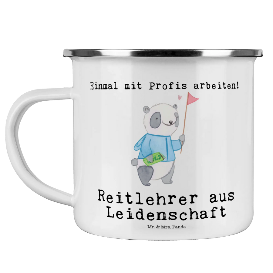 Entdecke die Berufe Kollektion von Mr. & Mrs. Panda und finde noch mehr liebevolle Geschenkideen für alle Berufsgruppen. Die Motive sind detailverliebt und fröhlich gestaltet und bringen jedes Herz zum Strahlen. Schenk Freude, schenk Erinnerungen, schenk die Camping Emaille Tasse "Reitlehrer aus Leidenschaft"!