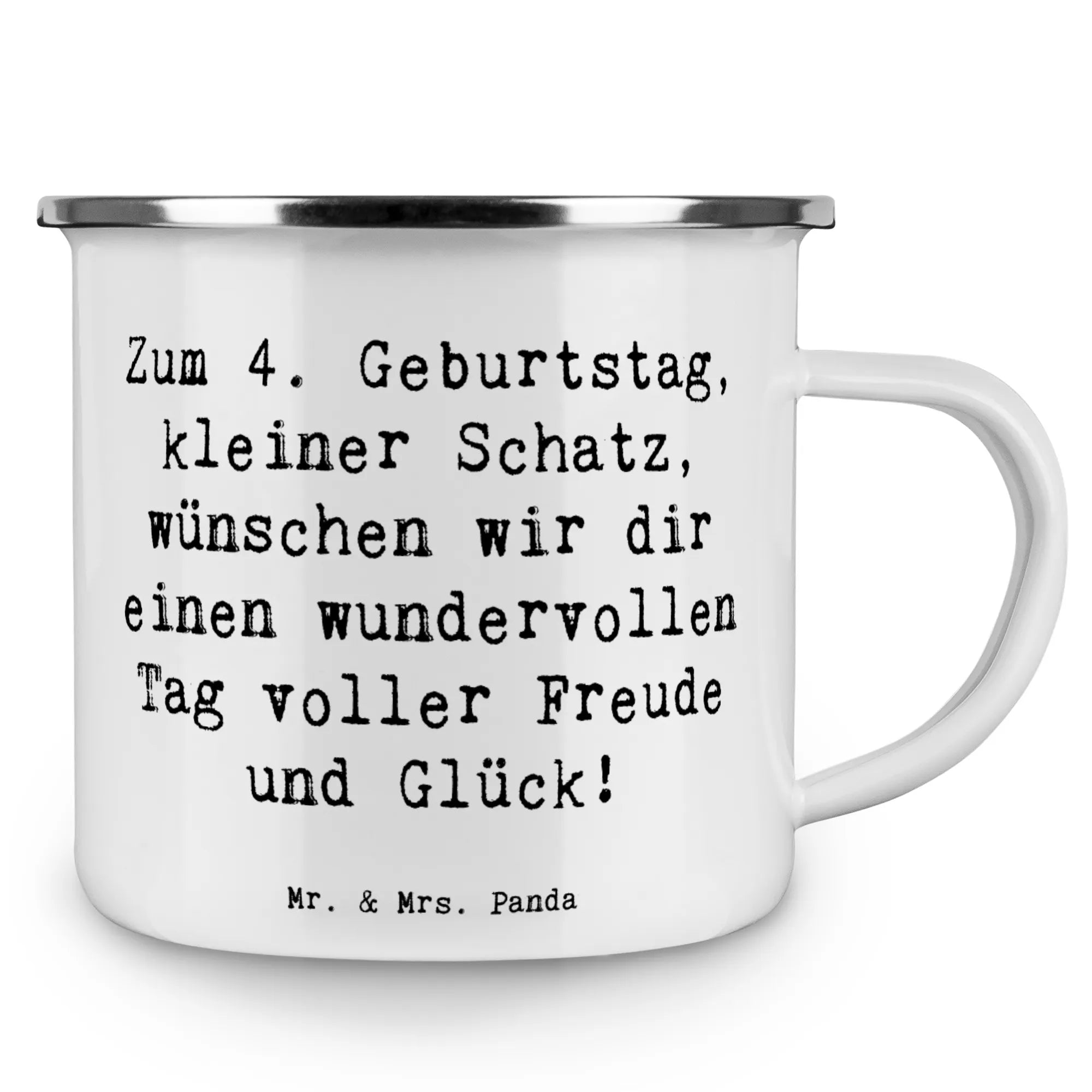 Die Camping Emaille Tasse von Mr. & Mrs. Panda ist das perfekte Geschenk für den 4. Geburtstag kleiner Entdecker. Diese wunderschöne und beständige Tasse, die mit dem liebevollen Spruch 'Zum 4. Geburtstag, kleiner Schatz, wünschen wir dir einen wundervollen Tag voller Freude und Glück!' bedruckt ist, macht jeden Outdoor-Tag zu einem besonderen Erlebnis.