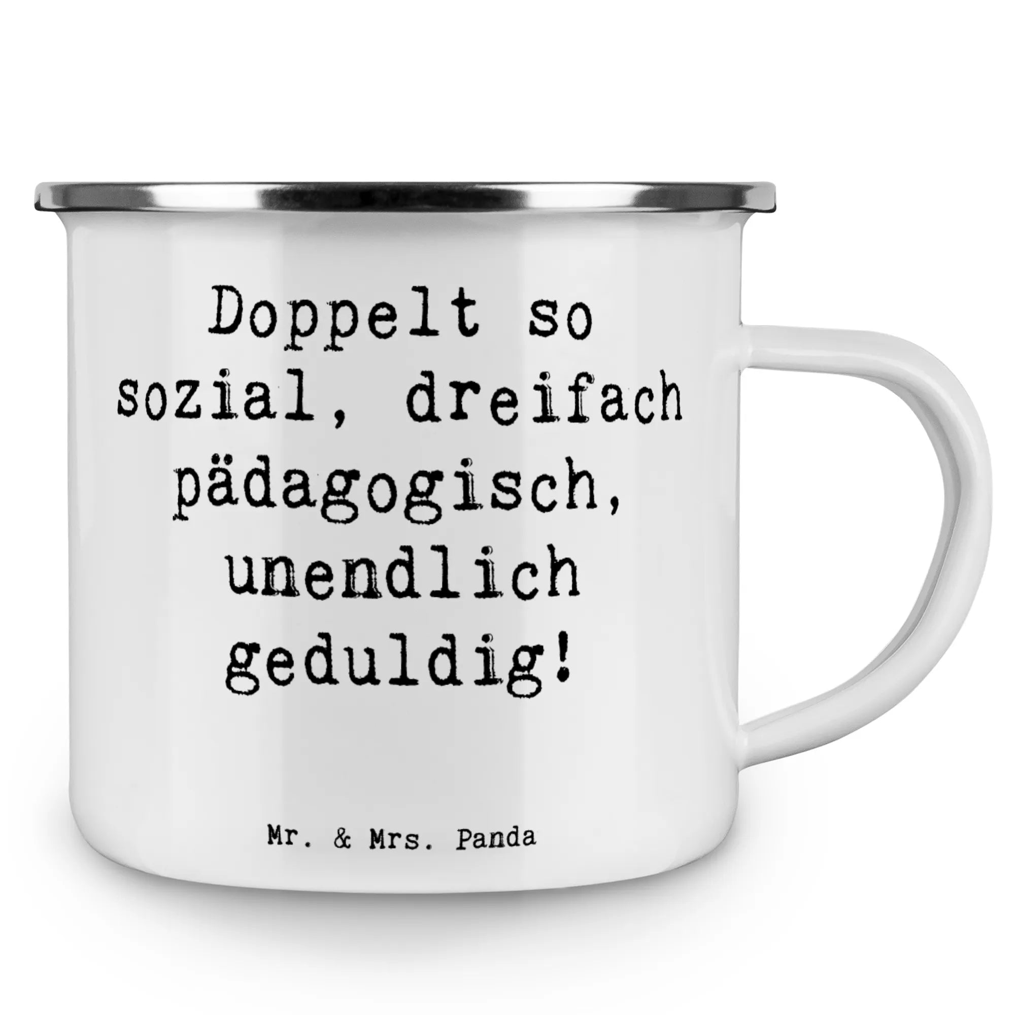 Camping Emaille Tasse Spruch Doppelt so sozial, dreifach pädagogisch, – Mr. & Mrs. Panda