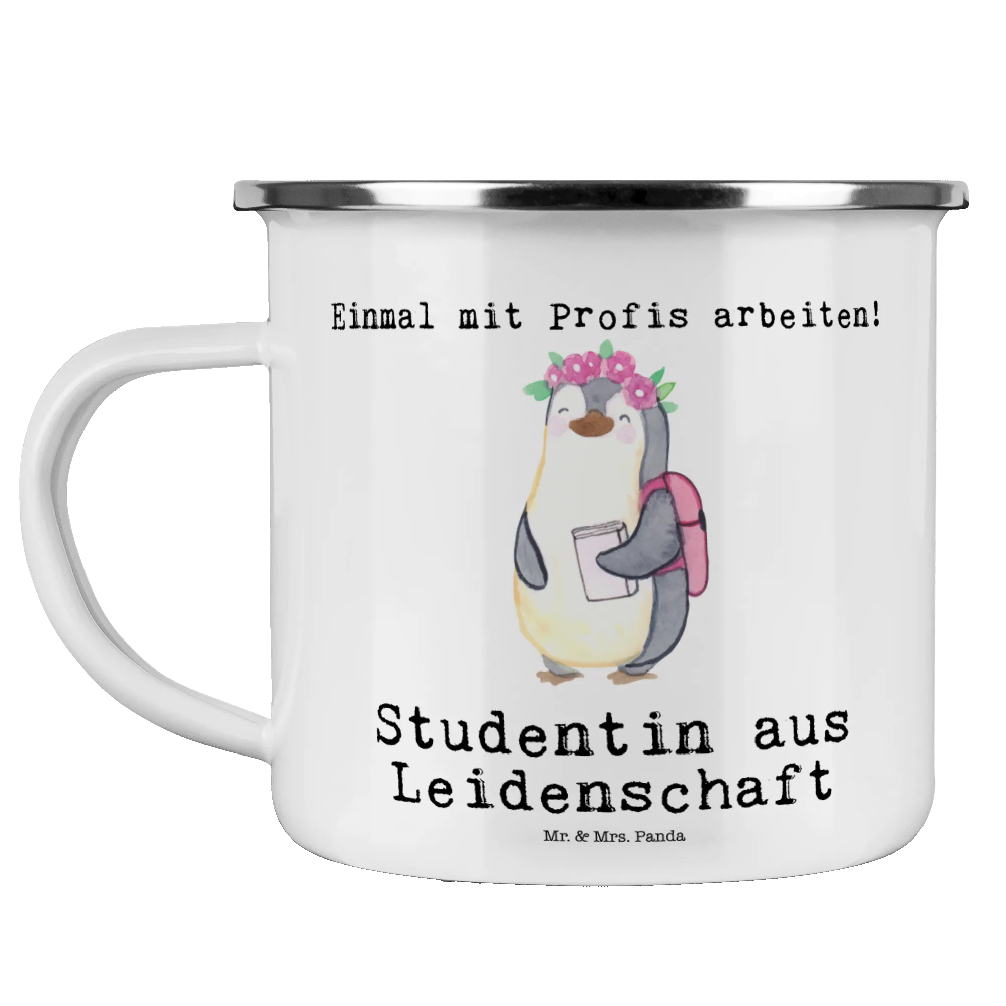 Suchst du nach einem besonderen Geschenk für einen Abschied, ein Jubiläum oder einfach als Dankeschön für deine Arbeitskollegen oder Freunde? Dann ist die Camping Emaille Tasse "Studentin aus Leidenschaft" genau das Richtige! Teil der einzigartigen Kollektion 'Berufe' von Mr. & Mrs. Panda, bietet dieses Produkt eine liebevolle Möglichkeit, deine Wertschätzung auszudrücken und gleichzeitig ein praktisches und originelles Geschenk zu machen.