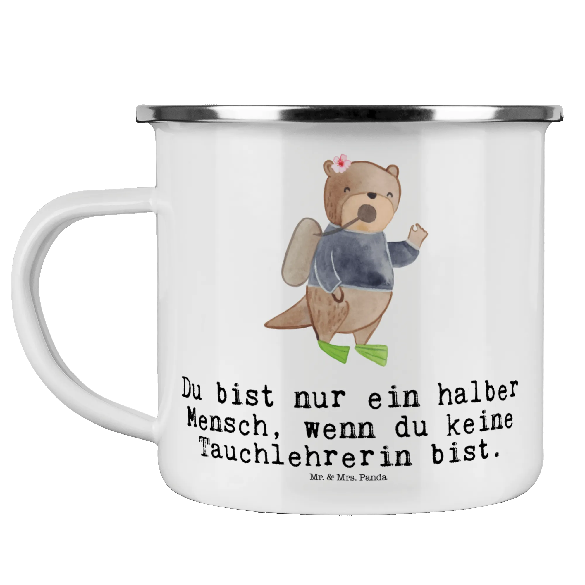 Diese bezaubernde Camping Emaille Tasse mit dem Motive 'Tauchlehrerin mit Herz' von Mr. & Mrs. Panda ist das perfekte Geschenk für alle Tauchbegeisterten und Outdoor-Fans. Sie ist nicht nur stylisch, sondern auch unglaublich funktional!