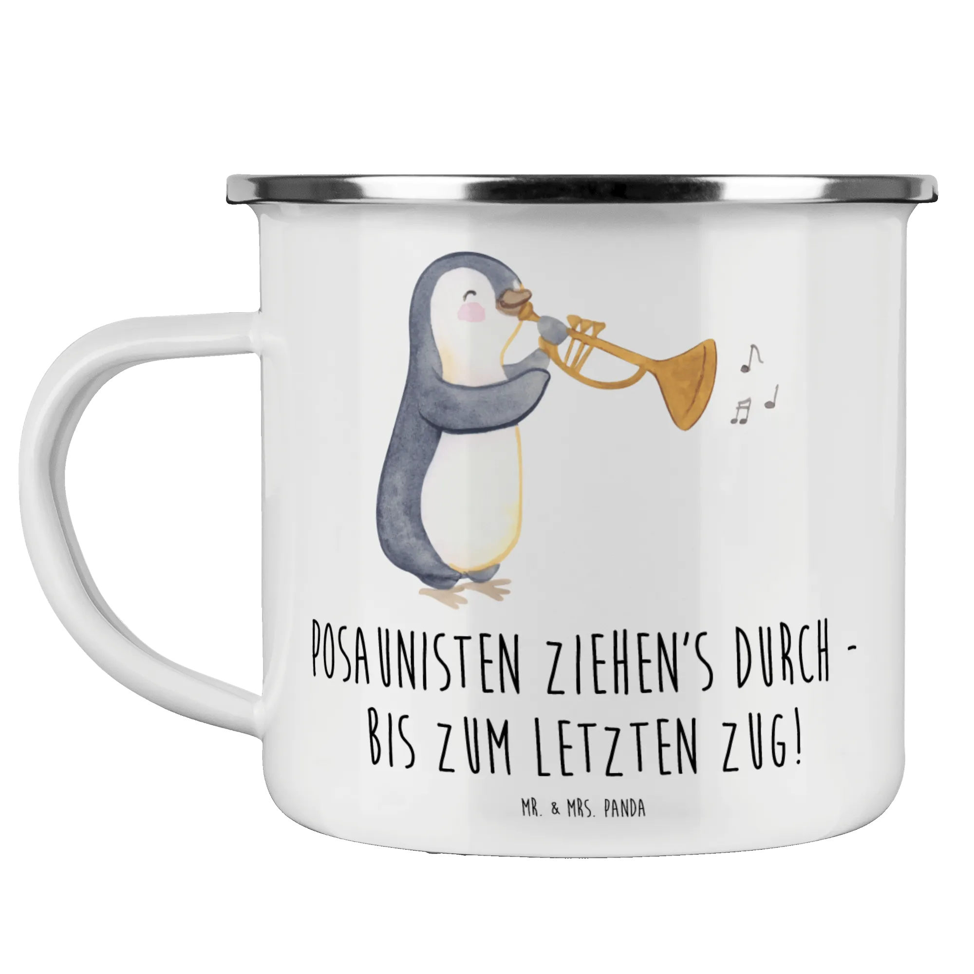 Die Camping Emaille Tasse Trombone von Mr. & Mrs. Panda ist das perfekte Geschenk für alle Musikliebhaber und Outdoor-Enthusiasten! 🎶 Ob beim Campen, Wandern oder einfach nur im Garten, diese Tasse bringt Spaß und Freude in jede Kaffeepause.