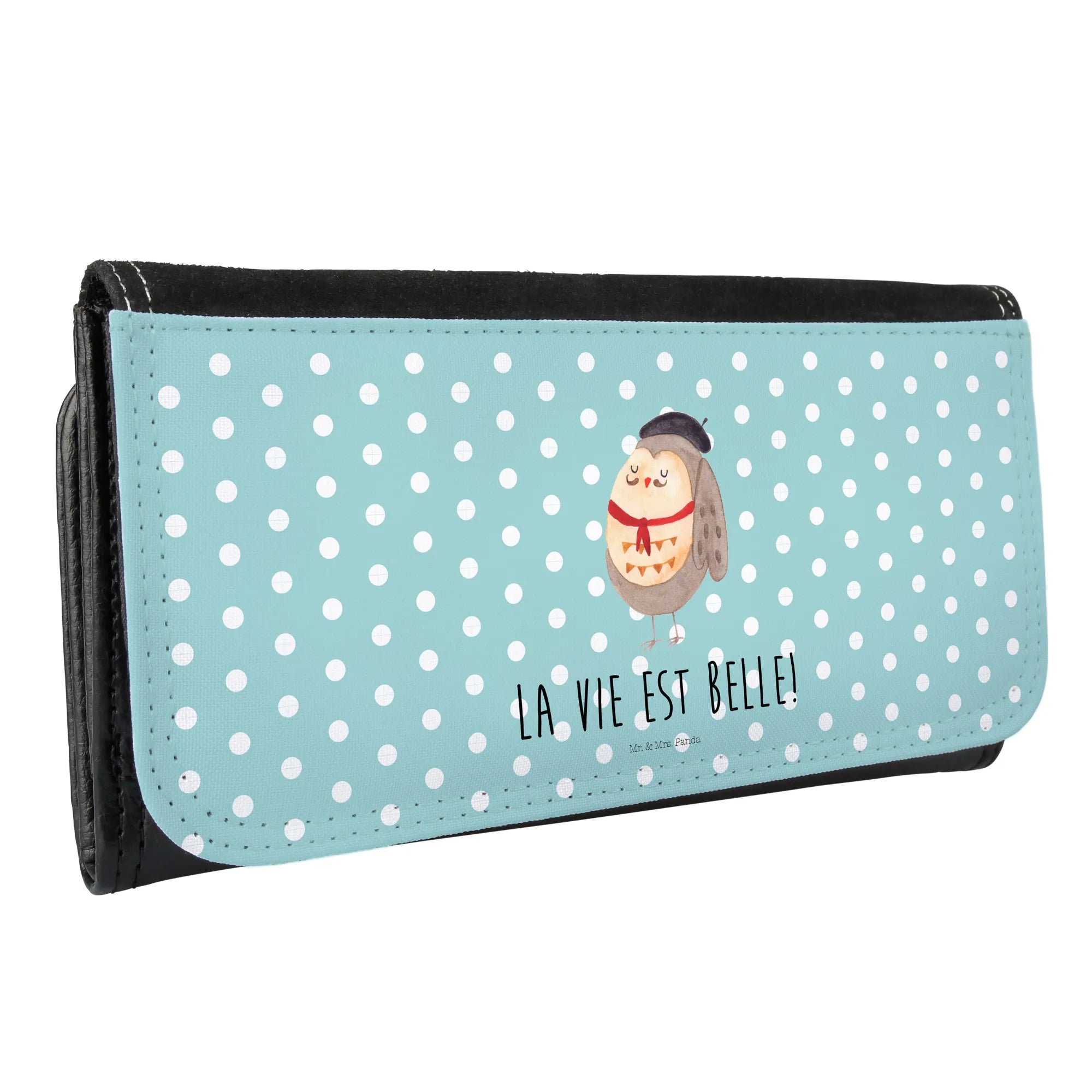 Entdecke das bezaubernde Damen Portemonnaie von Mr. & Mrs. Panda mit dem liebevollen Eulen-Motiv im französischen Stil! Dieses Portemonnaie ist nicht nur ein praktisches Accessoire, sondern auch ein echter Hingucker! Mit dem charmanten Slogan "La vie est belle!" wird es dich jeden Tag daran erinnern, das Leben in vollen Zügen zu genießen. Die süße Eule mit ihrem Hut, Fliege und Schnurrbart bringt einen Hauch von Frankreich in dein Leben und zaubert dir und anderen ein Lächeln ins Gesicht.