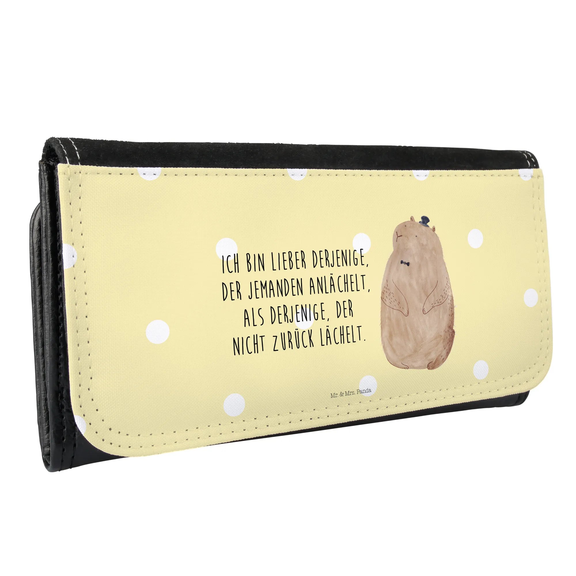 Verliebe dich in unser Damen Portemonnaie von Mr. & Mrs. Panda! Es misst 188 mm x 100 mm x 35 mm und wiegt 221 g, perfekt für jede Handtasche. Aus hochwertigem Kunstleder gefertigt, kommen die süßen Motive und Sprüche besonders schön zur Geltung. Mit 7 Kartenfächern, 2 Scheinfächern und einem Münzfach hast du genug Platz für alles, was du brauchst. Ob bei der Arbeit, beim Einkaufen oder auf Reisen – dieses Portemonnaie ist dein treuer Begleiter. Es ist robust, langlebig und pflegeleicht; ein feuchtes Tuch reicht, um es frisch zu halten. Außerdem begeistert der brillante Farbendruck, der für gute Laune sorgt. Gönn dir das Damen Portemonnaie von Mr. & Mrs. Panda und entdecke die Freude am Organisieren!
