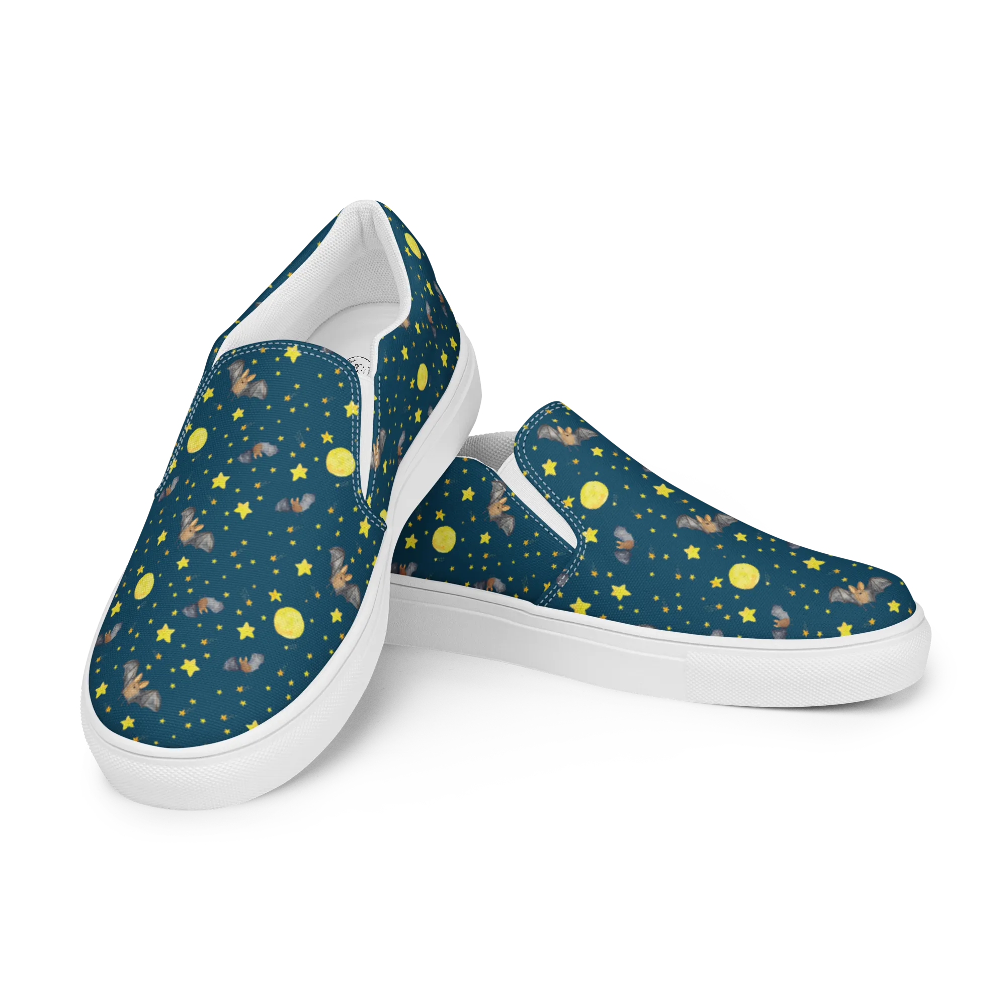 Die Illustration legt Wert auf gemütliche, dunklere Farbtöne, kombiniert mit warmen Akzenten, sodass die nachtaktive Fledermaus sowohl elegant als auch liebevoll wirkt. Sie ist ideal für alle, die die Stille der Nacht mögen, Sterne beobachten oder jemanden suchen, der die besondere Stimmung der Dämmerung teilt. Das Motiv passt wunderbar auf Wohntextilien, Poster oder Kleidung für entspannte Abende.