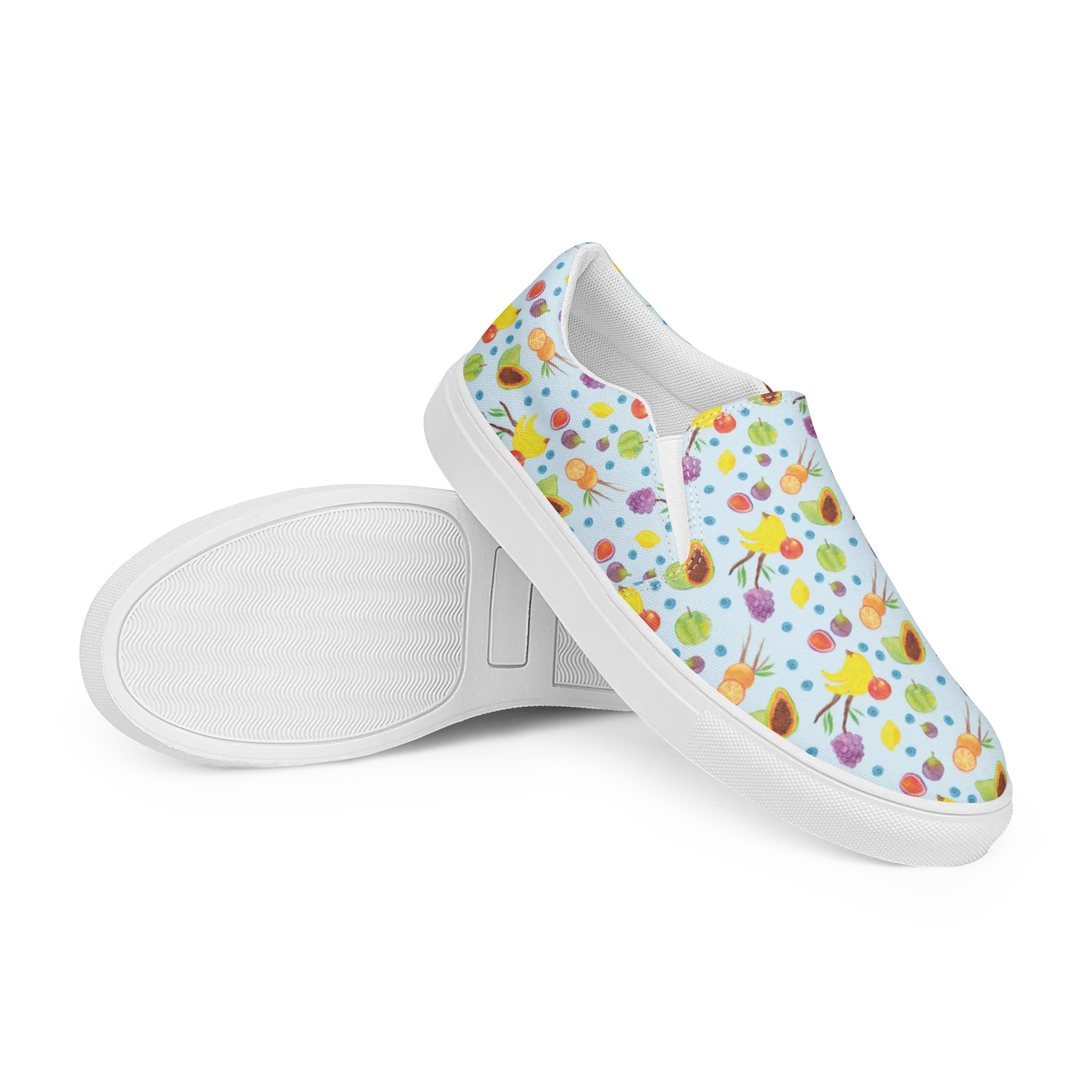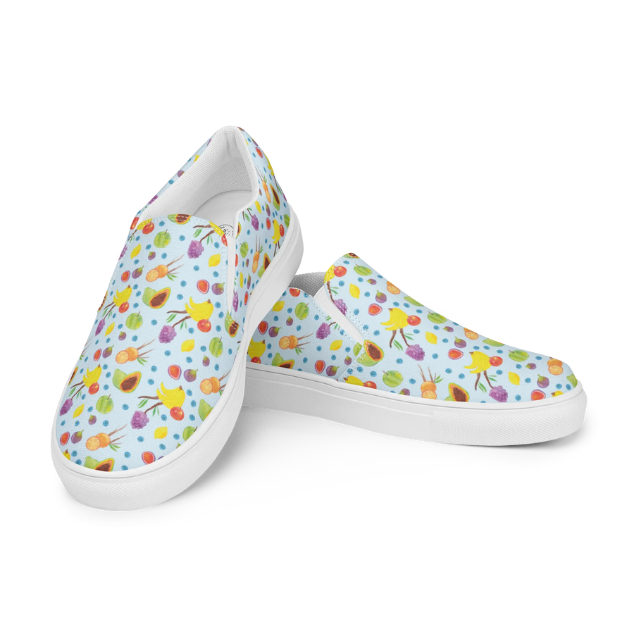 Damen Slipper Obst Korb Muster - Größe 44 1/2