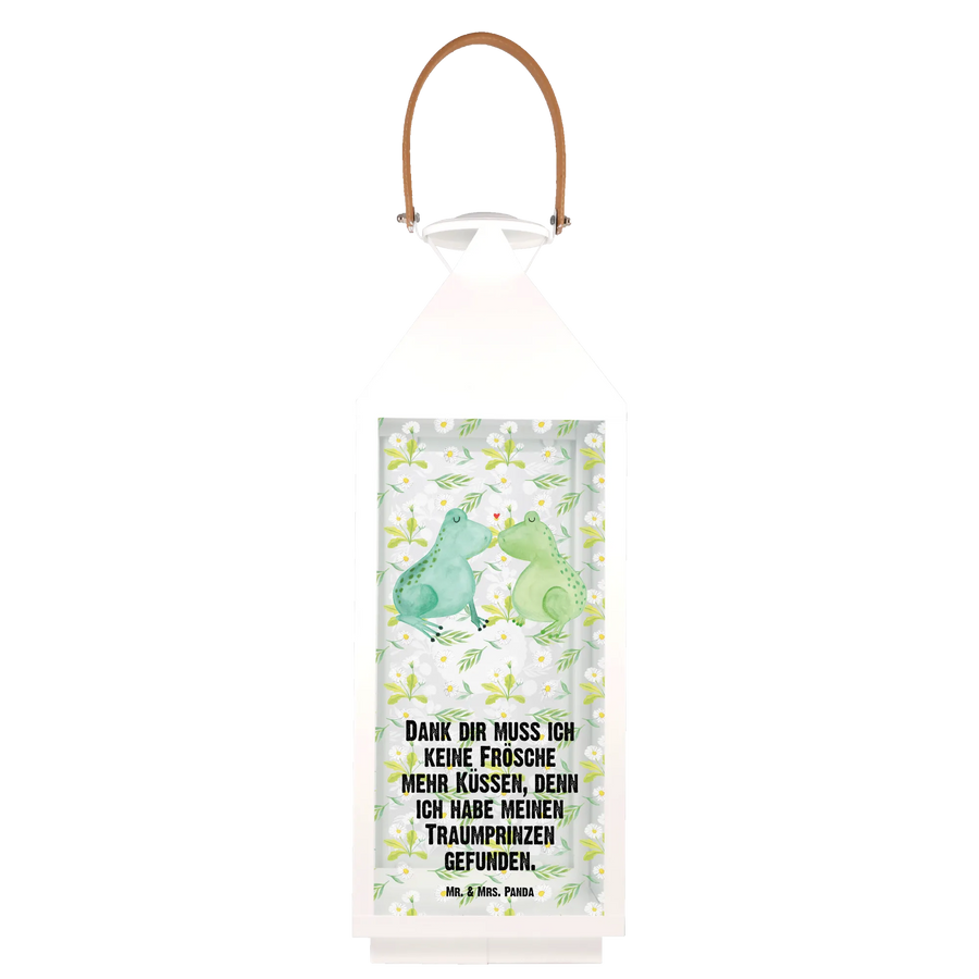 Die wunderschöne Deko Laterne Frosch Liebe von Mr. & Mrs. Panda ist das perfekte Geschenk für Verliebte! Mit ihrem liebevollen Design und dem charmanten Spruch "Dank dir muss ich keine Frösche mehr Küssen, denn ich habe meinen Traumprinzen gefunden" ist sie ideal für jeden Anlass – sei es als romantisches Geschenk zum Jahrestag, Hochzeitstag oder zur Verlobung. Diese Laterne bringt nicht nur Licht in die Dunkelheit, sondern auch Freude in jedes Herz!