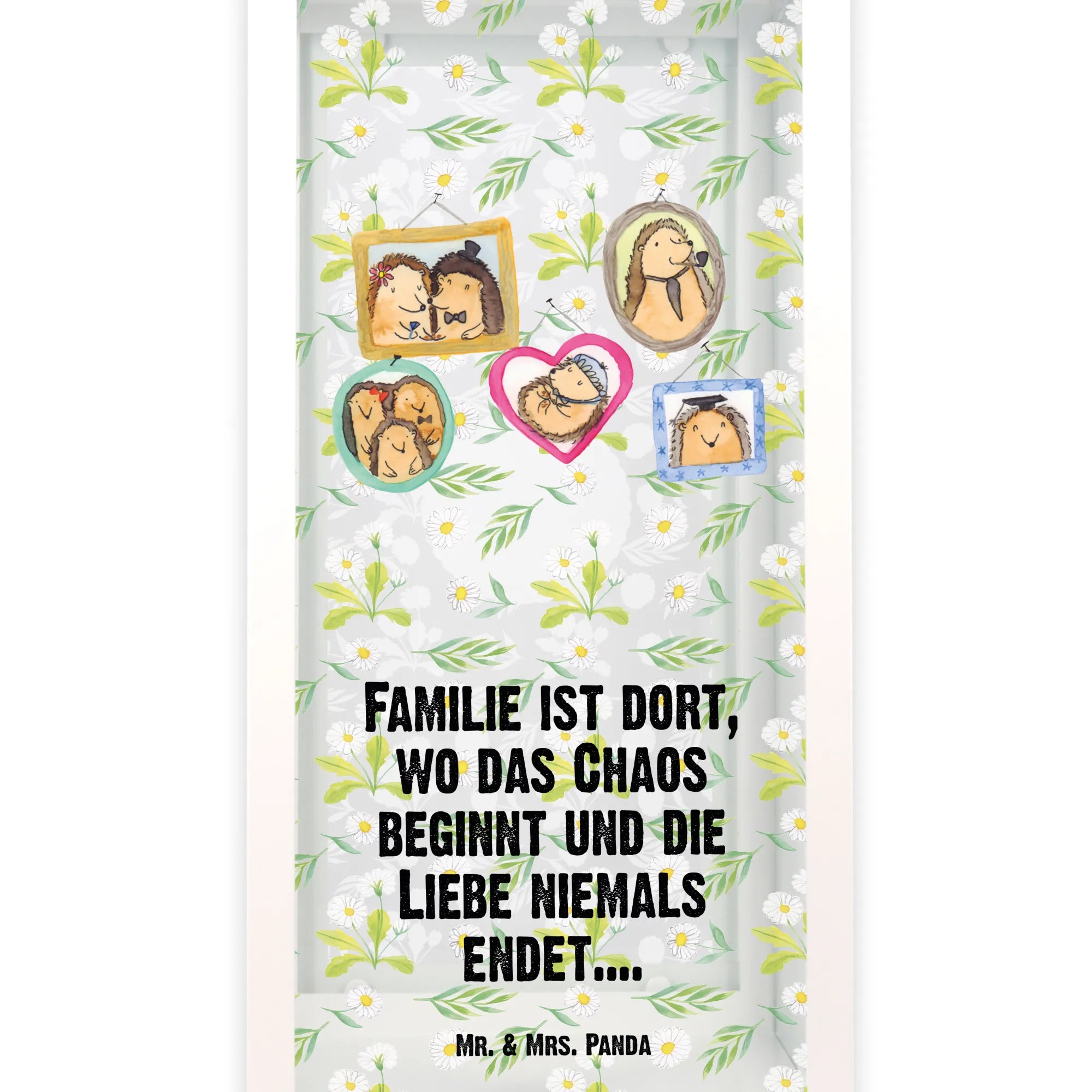 Mit den charmanten Motiven aus unserer Familienkollektion zaubert die Laterne ein Lächeln auf jedes Gesicht. Die bezaubernden Bilder zeigen eine Igel-Familie in herzlichen Szenen, die von Zuneigung und Zusammenhalt geprägt sind. Du kannst die Laterne mit Teelichtern oder Lichterketten bestücken, um eine stimmungsvolle Beleuchtung zu erzeugen.