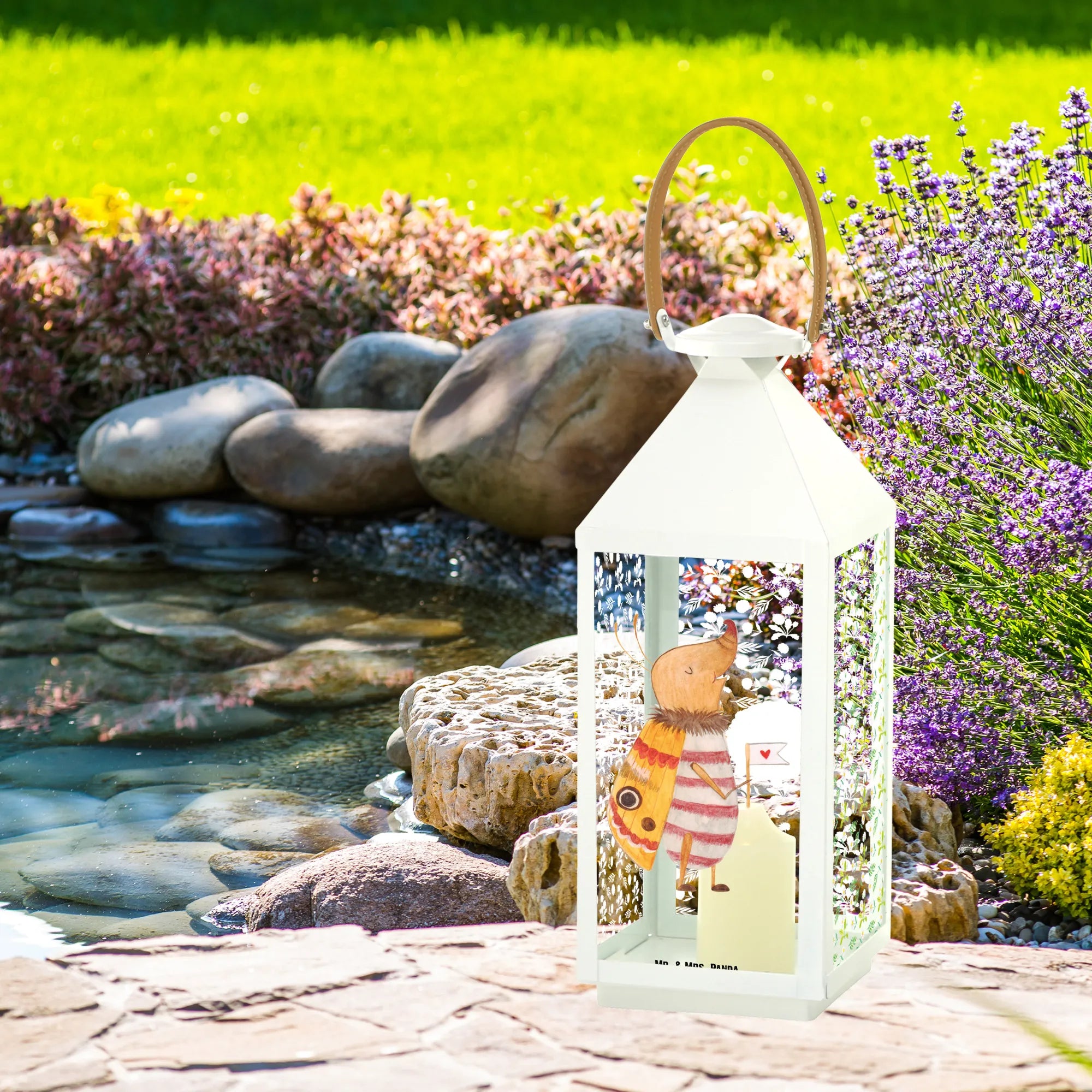 Die Deko Laterne Nachtfalter mit Fähnchen von Mr. & Mrs. Panda ist das perfekte Geschenk für Gartenliebhaber, Kreative und alle, die eine Prise Magie in ihr Zuhause bringen möchten! Mit ihrem bezaubernden Design und dem süßen Motiv eines kleinen Nachtfalters, der eine herzförmige Fahne in der Hand hält, ist diese Laterne ein echter Blickfang. Sie sorgt nicht nur für eine romantische Atmosphäre auf deiner Terrasse oder deinem Balkon, sondern auch für gute Laune in jedem Raum.