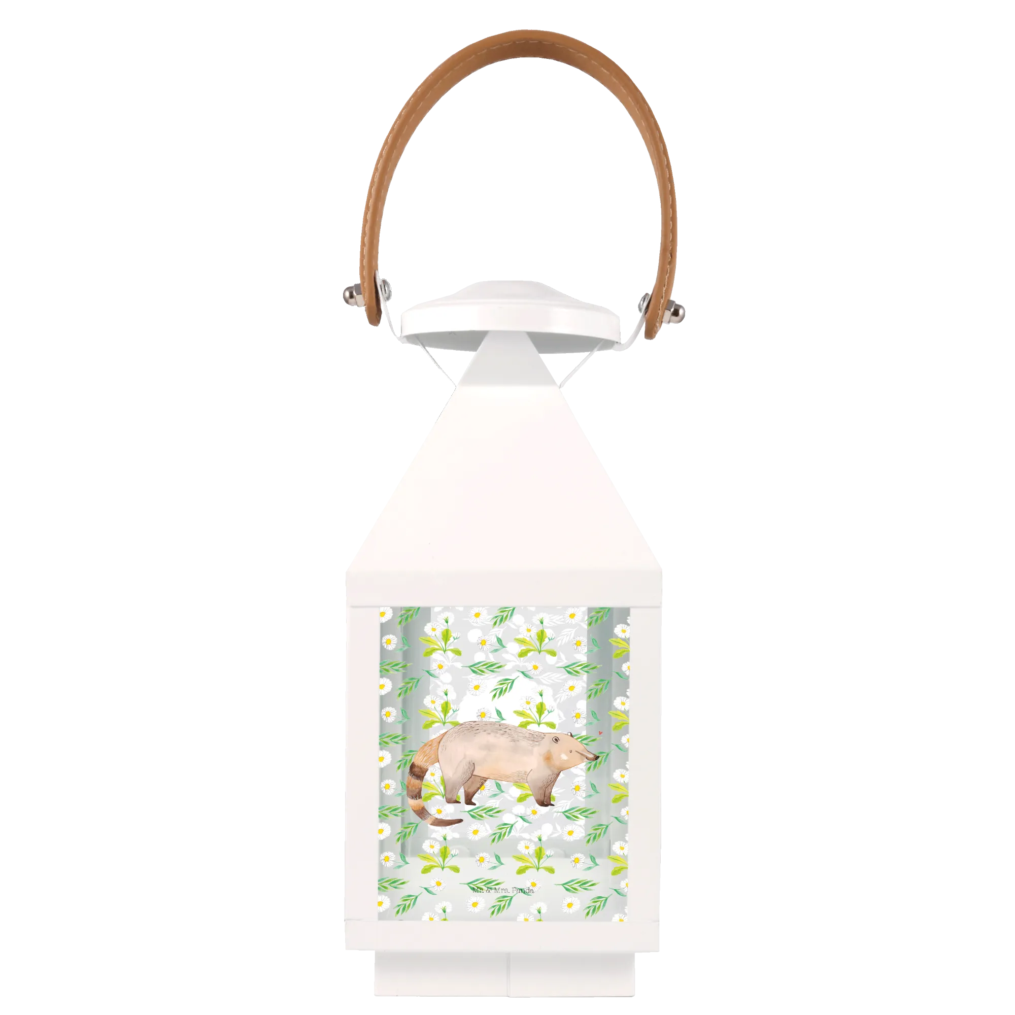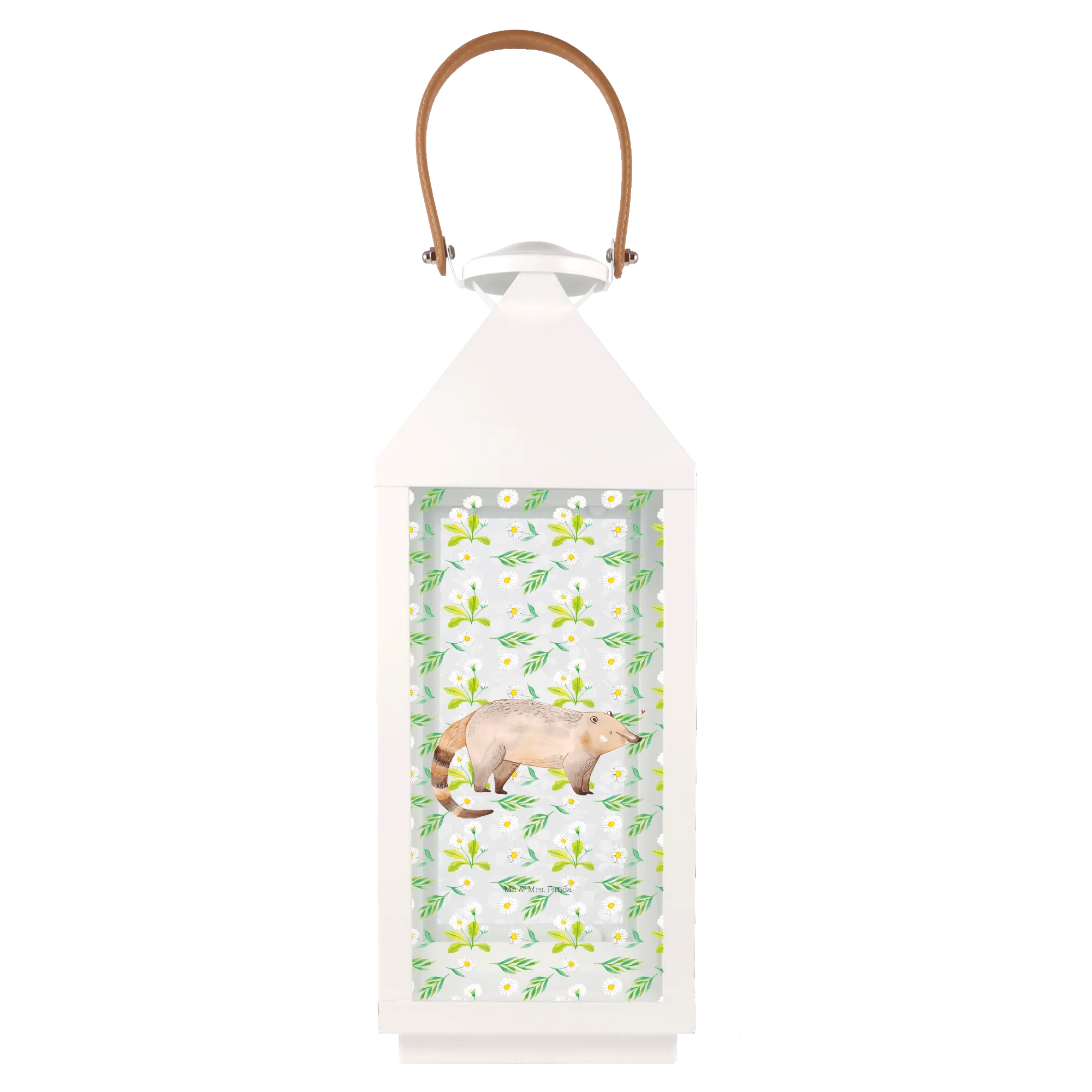 Die Deko Laterne mit dem niedlichen Nasenbär-Motiv aus der Small World Kollektion von Mr. & Mrs. Panda ist der perfekte Begleiter für Deine Gartenparty oder für den Balkon!
