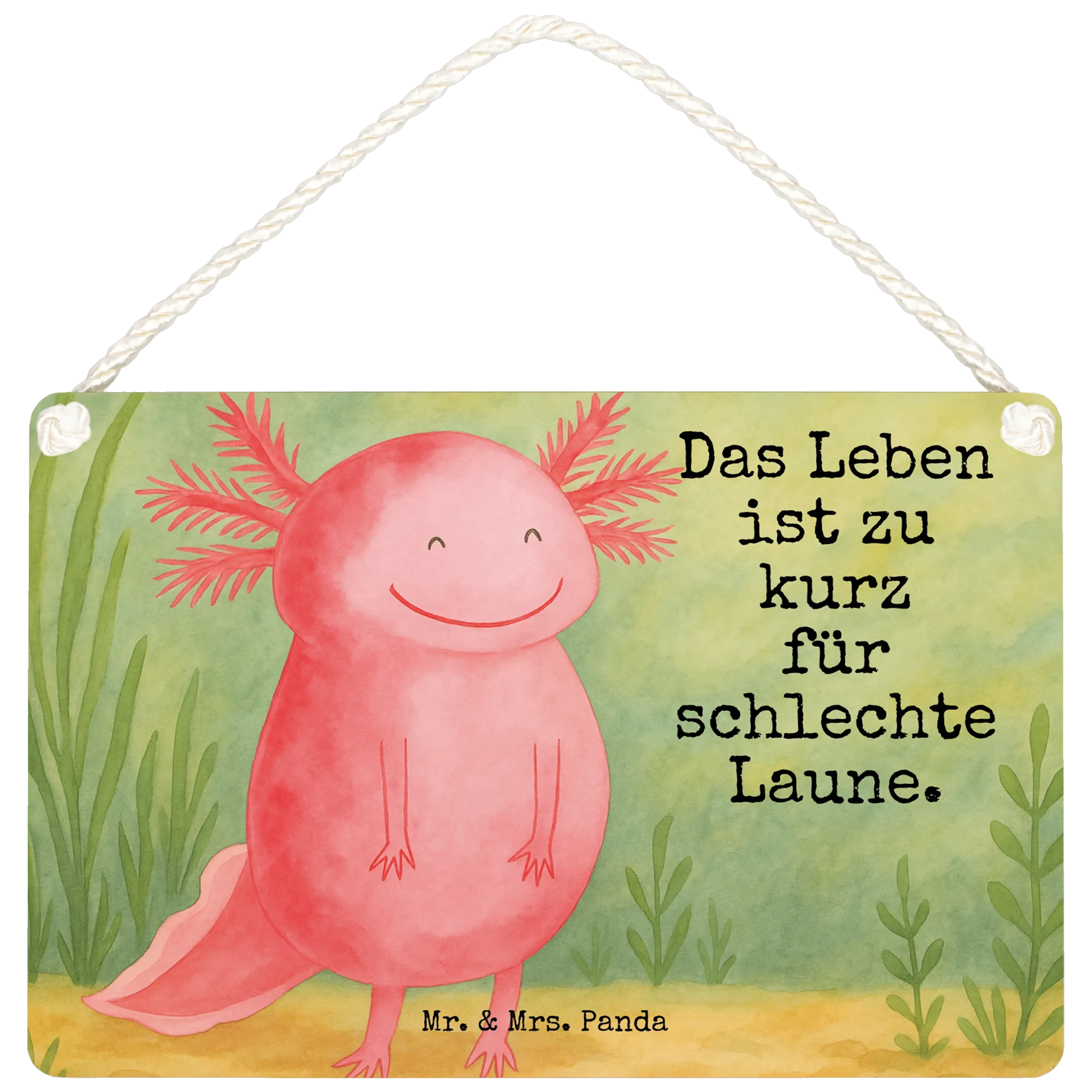 Stell dir vor, du kommst nach einem langen Tag nach Hause, öffnest die Tür und das erste, was dich begrüßt, ist das strahlende Lächeln eines glücklichen Axolotls. Unser Deko Schild Axolotl glücklich aus der exklusiven Axolotl Kollektion ist nicht einfach nur eine Wandtafel, es ist ein täglicher kleiner Lichtblick. Dieses Motiv, ein süßer und begeisterter Axolotl, der pure Lebensfreude ausstrahlt, wurde von Mrs. Panda mit viel Herzblut in Aquarell handgezeichnet. 🎨