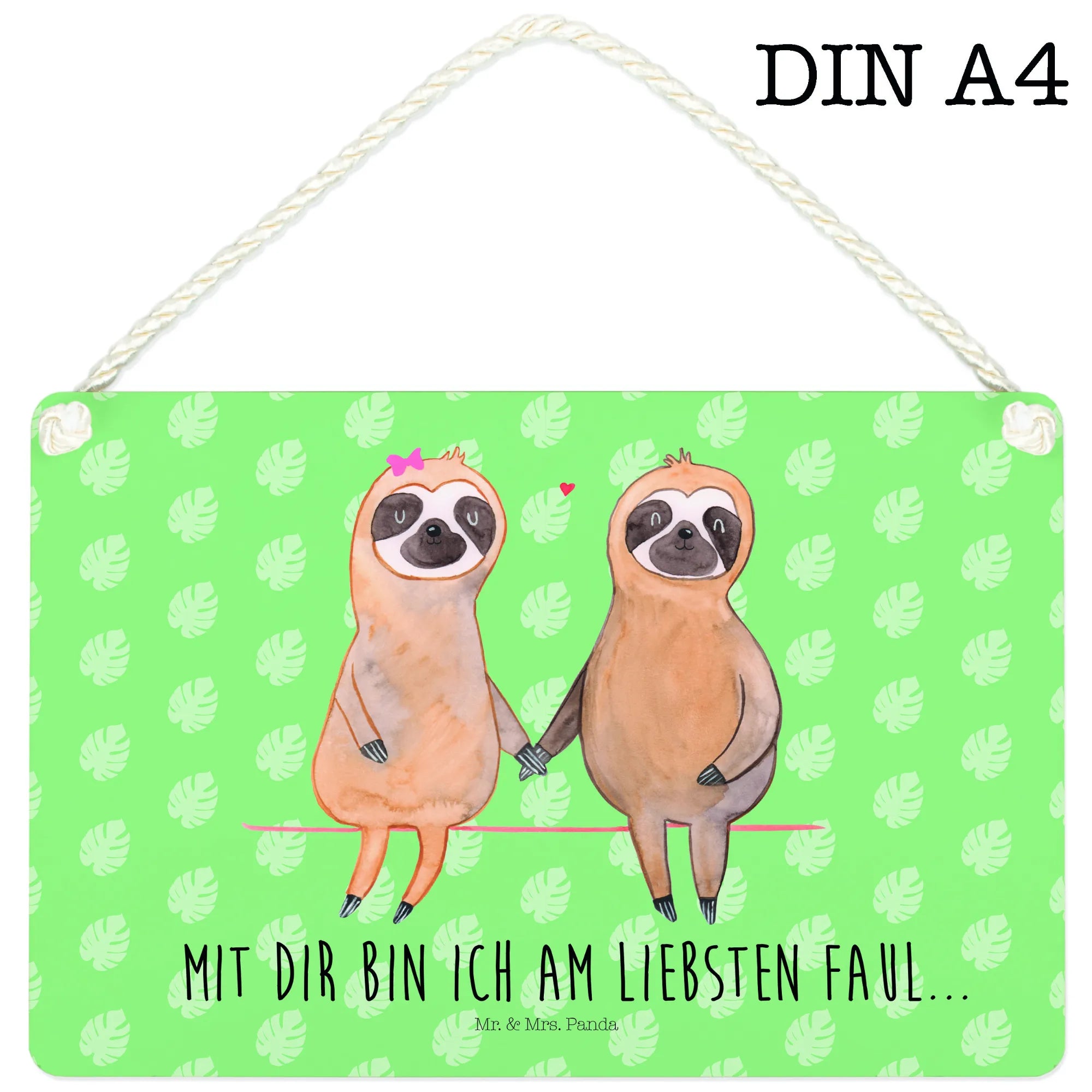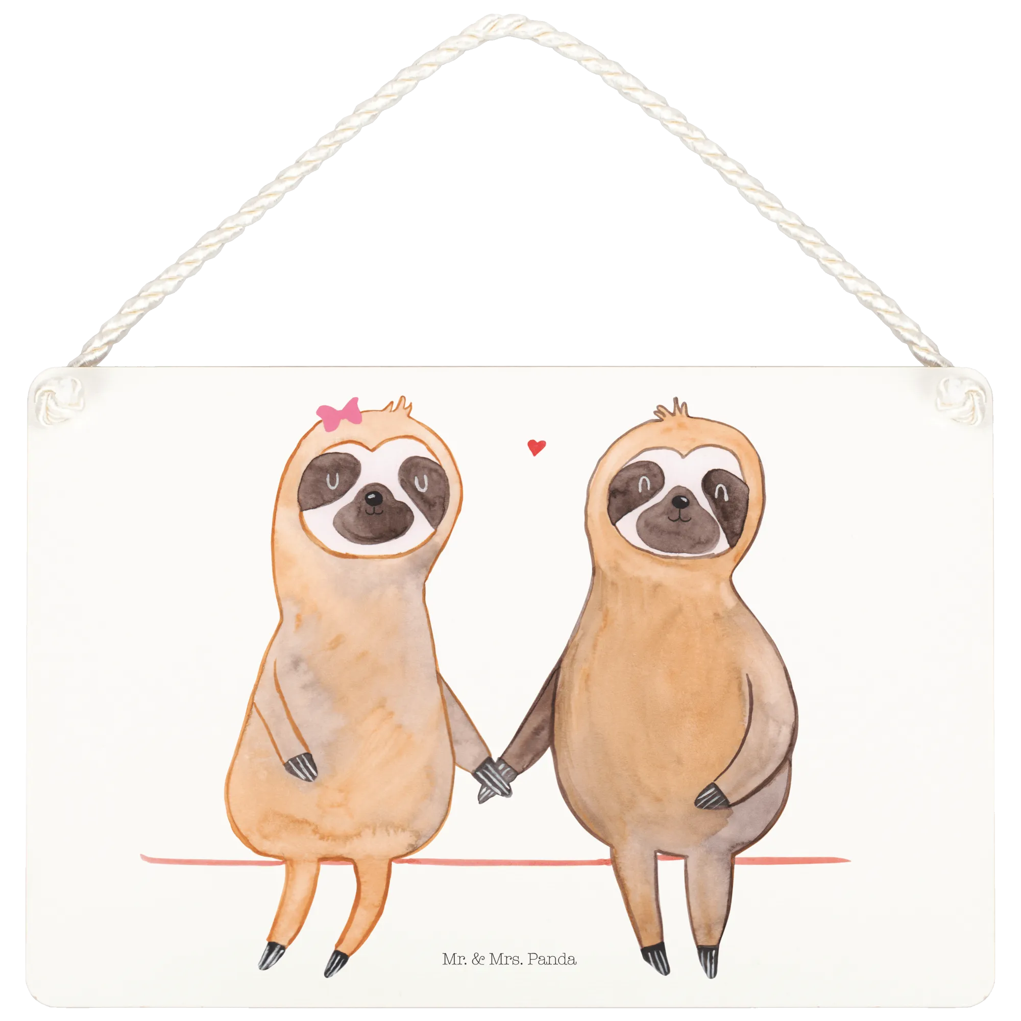Das wunderschöne Deko Schild Faultier Pärchen von Mr. & Mrs. Panda ist das perfekte Geschenk für alle Faultier-Liebhaber! Dieses edle Holzschild aus beschichteter Holzfaser zeigt ein liebevoll handgezeichnetes Aquarell-Gemälde eines süßen Faultierpaares, das sich an den Händen hält.