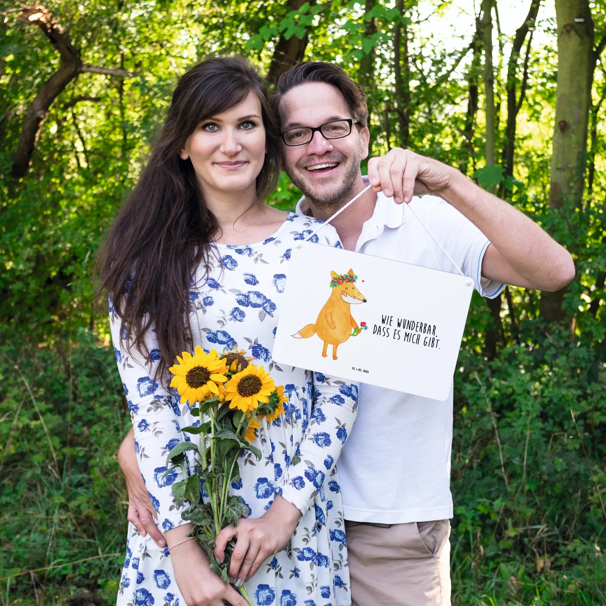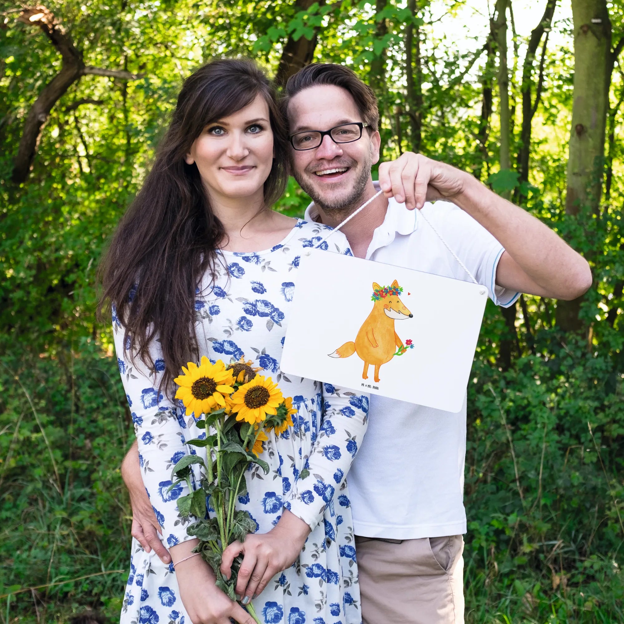 Das Deko Schild Fuchs Blumenliebe von Mr. & Mrs. Panda ist mehr als nur eine dekorative Wand- oder Türdekoration – es ist ein Ausdruck von Liebe zur Natur und den kleinen Freuden des Lebens. Mit seinem bezaubernden Motiv eines Fuchses, der sich mit prächtigen Blumen schmückt, sorgt dieses Schild für ein Lächeln auf jedem Gesicht. Es ist ein perfektes Geschenk für Freundinnen, die die Schönheit der Natur schätzen oder für Momente, in denen du deiner besten Freundin zeigen möchtest, wie besonders sie für dich ist. Das Schild ist aus beschichteter Holzfaser gefertigt, was es langlebig und widerstandsfähig macht. Daher eignet es sich ideal für den Innenbereich sowie für überdachte Außenbereiche.