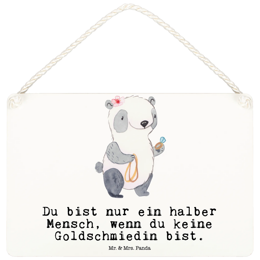 Entdecke unser wunderschönes Deko Schild "Goldschmiedin mit Herz" aus der kreativen Berufe Kollektion von Mr. & Mrs. Panda! Dieses einzigartige Holzschild ist mehr als nur ein Stück Deko für dein Zuhause; es ist eine Hommage an die Kunst des Goldschmiedens und eignet sich perfekt als Geschenk für Juwelierinnen, Goldschmiedinnen oder Schmuckwarenhändlerinnen.