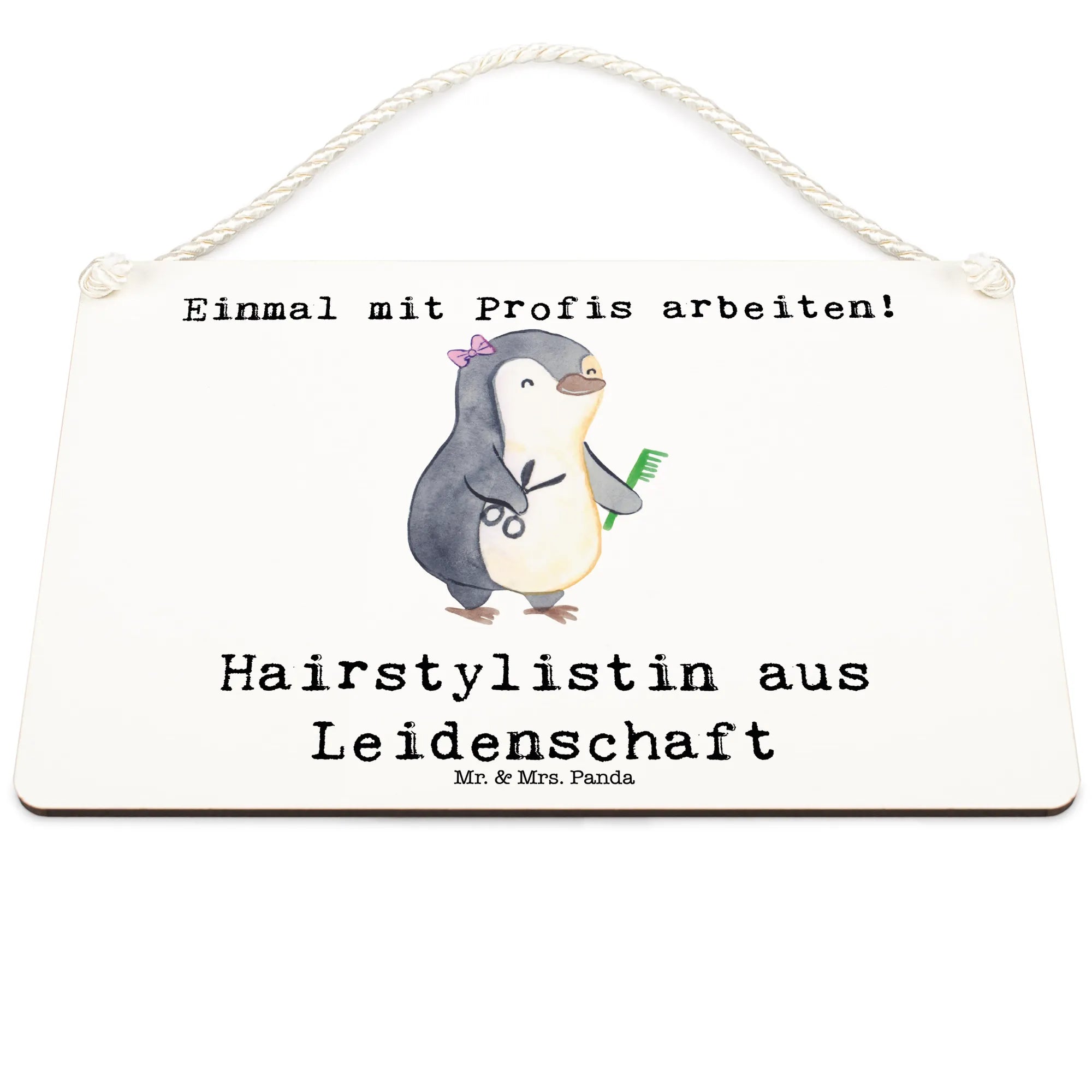 Das Deko Schild "Hairstylistin aus Leidenschaft" von Mr. & Mrs. Panda ist das perfekte Geschenk für alle Friseurinnen und Hairstylistinnen, die mit Herzblut ihrem Beruf nachgehen.