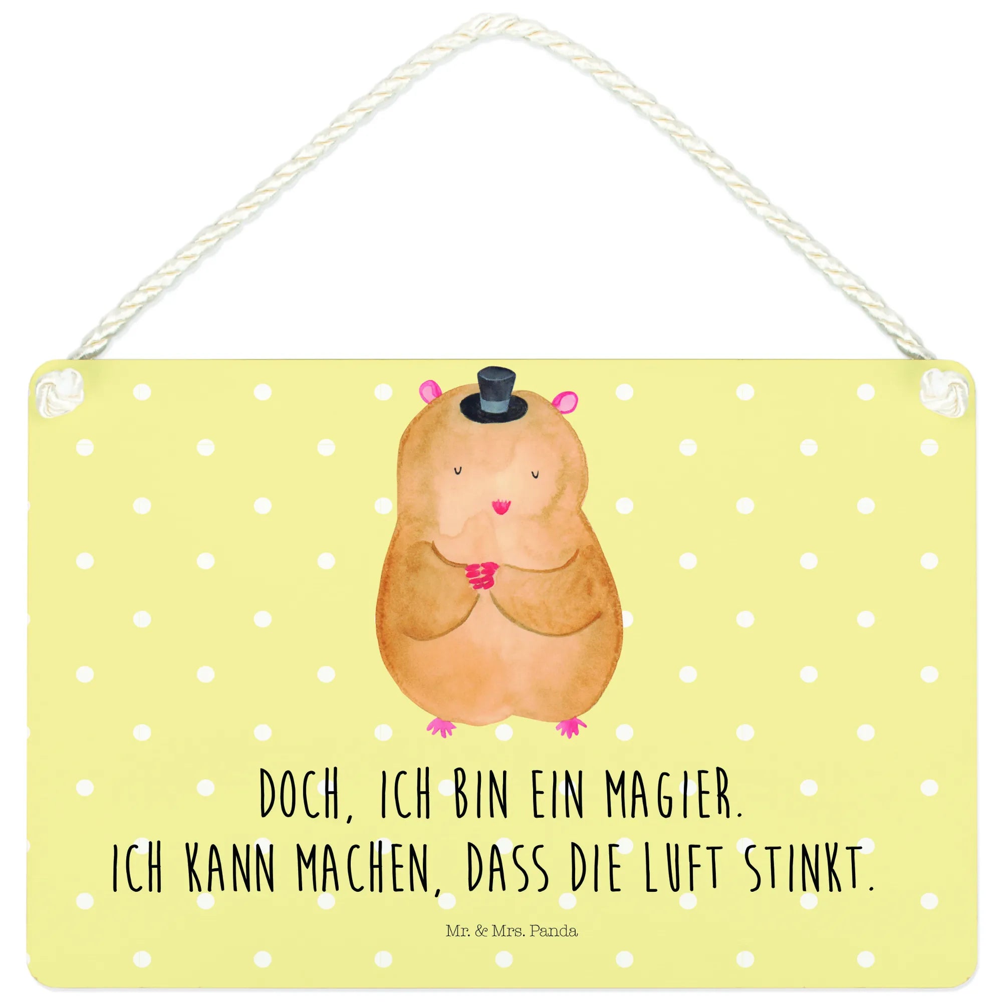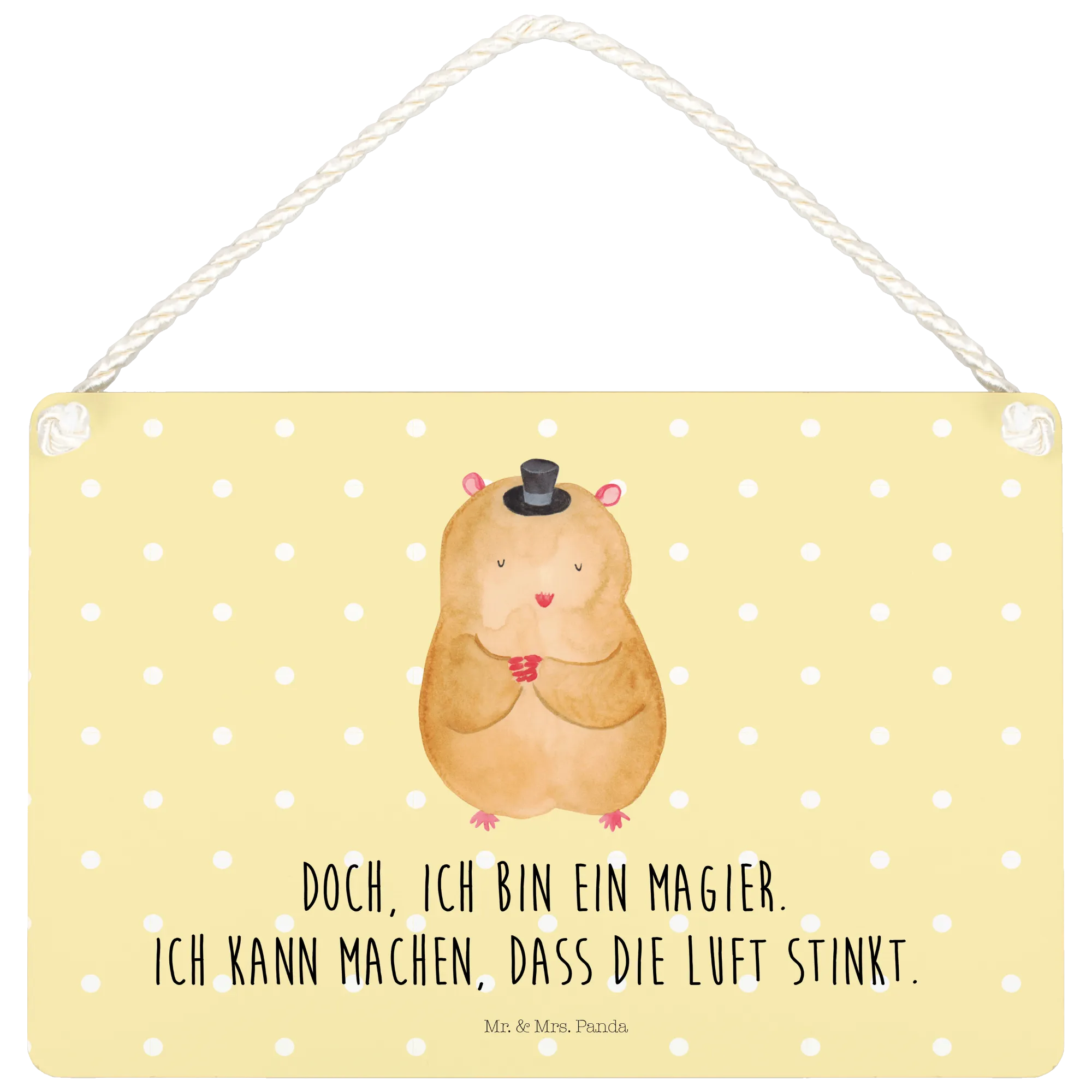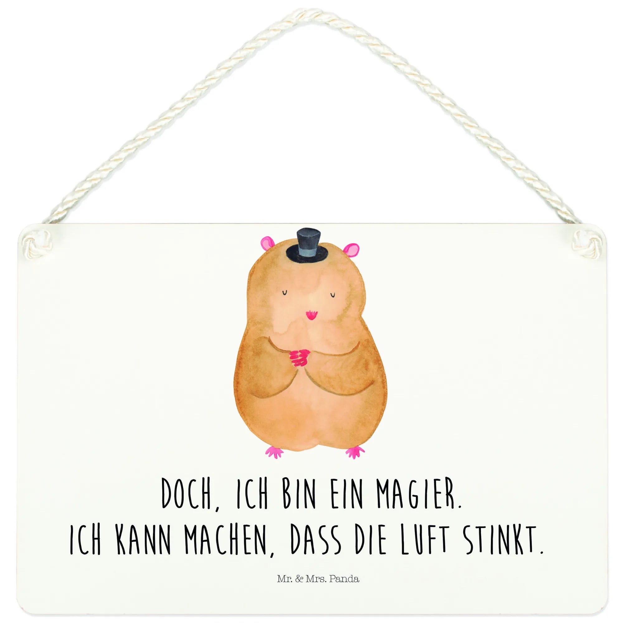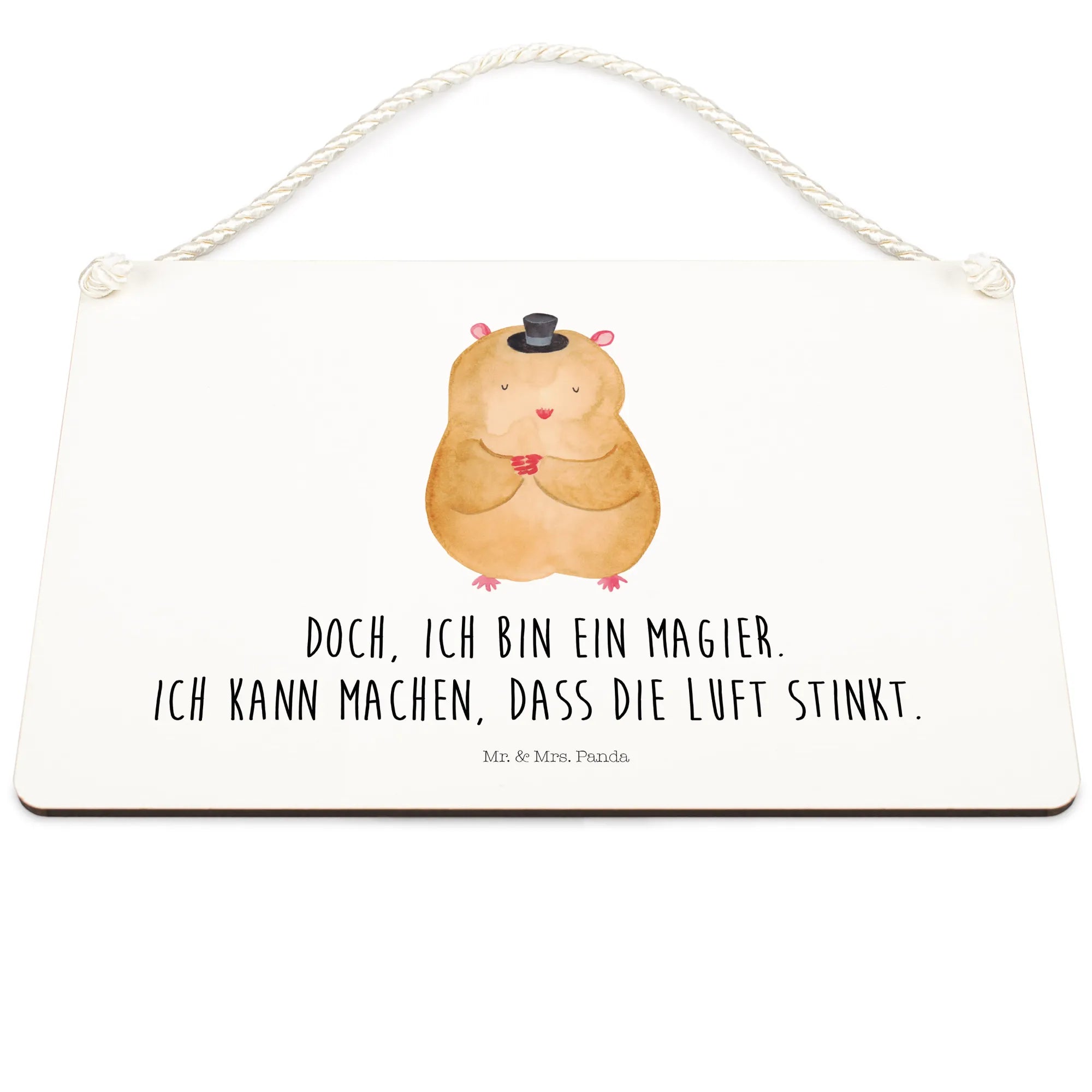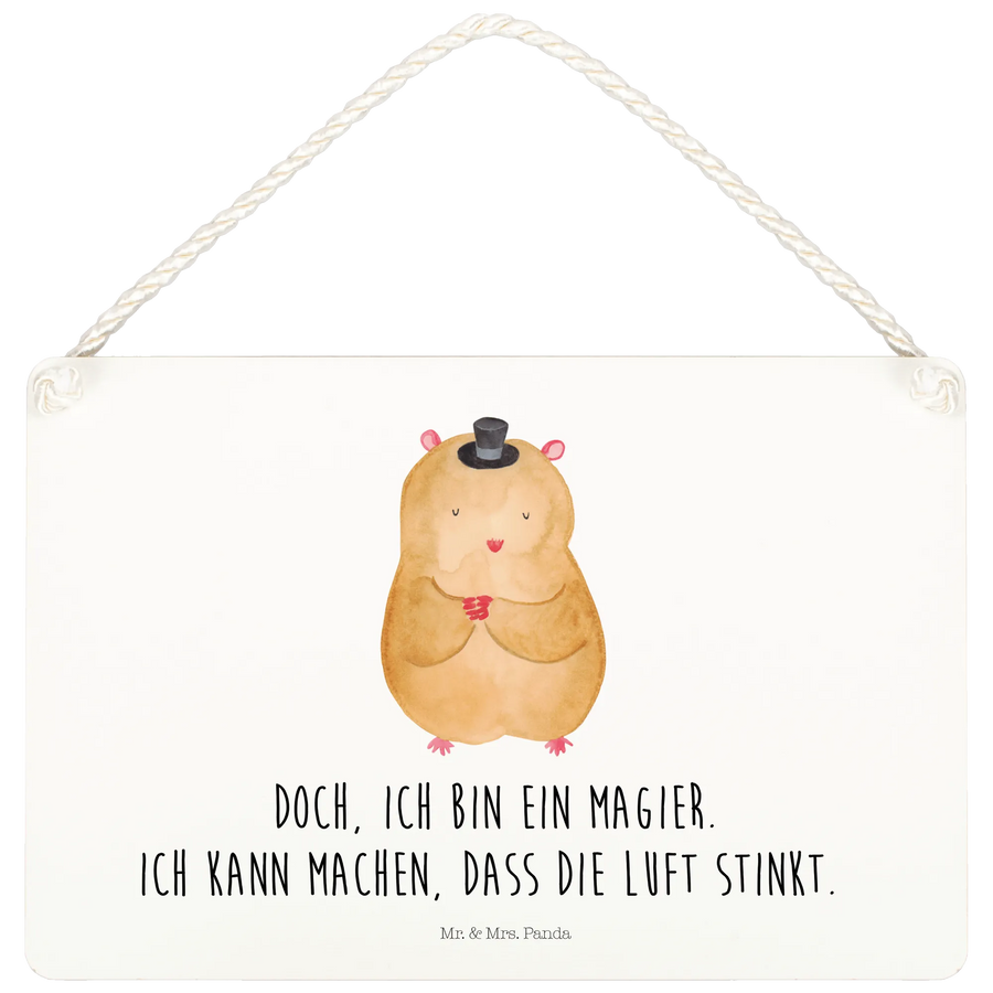 Das Dekoschild 'Hamster mit Hut' aus der Small World Kollektion von Mr. & Mrs. Panda ist das perfekte Geschenk für alle Tierliebhaber und Freunde des guten Humors. Mit seinem liebevollen Design und dem charmanten Spruch 'Doch, ich bin ein Magier. Ich kann machen, dass die Luft stinkt.' bringt dieser kleine Hüter gute Laune in jedes Zuhause.