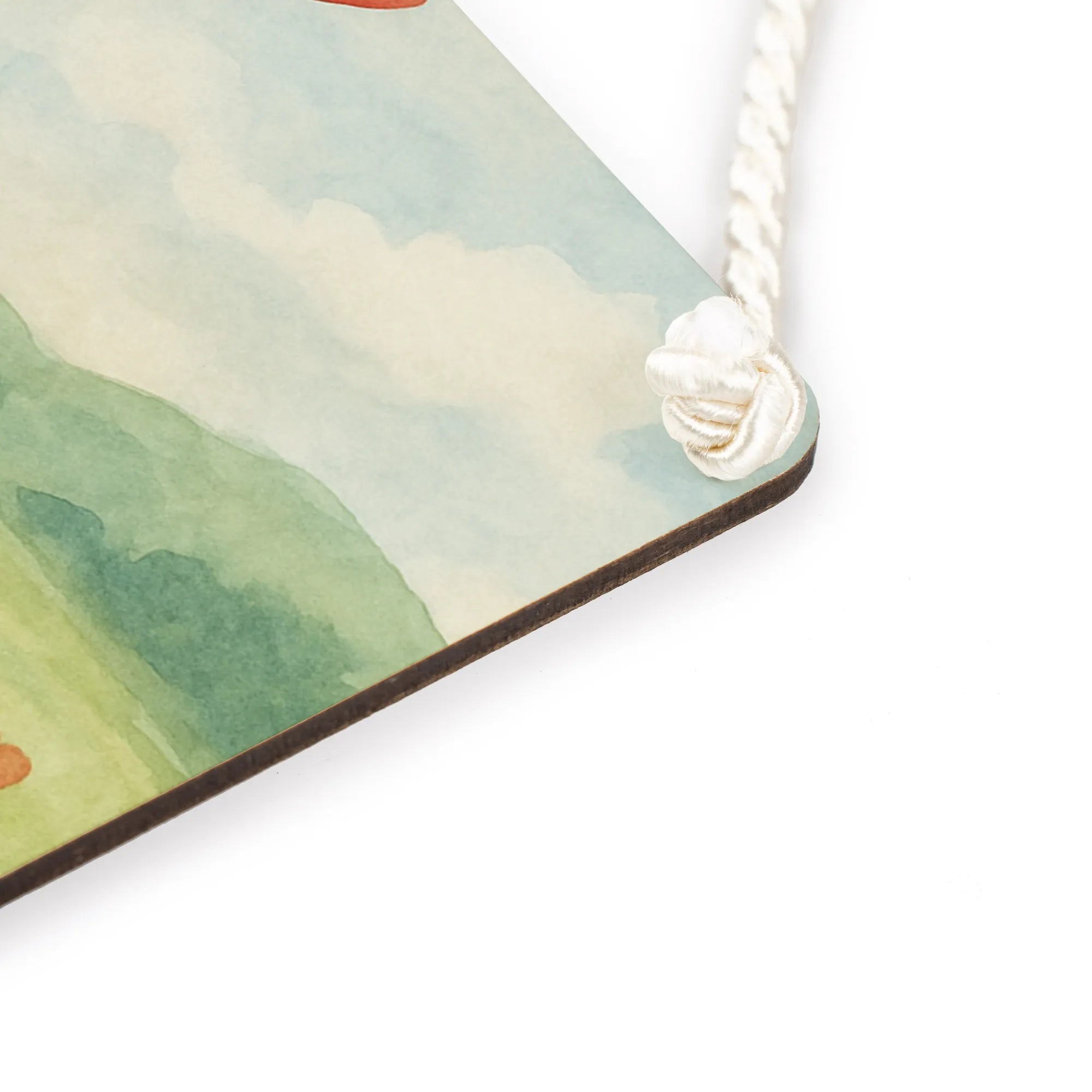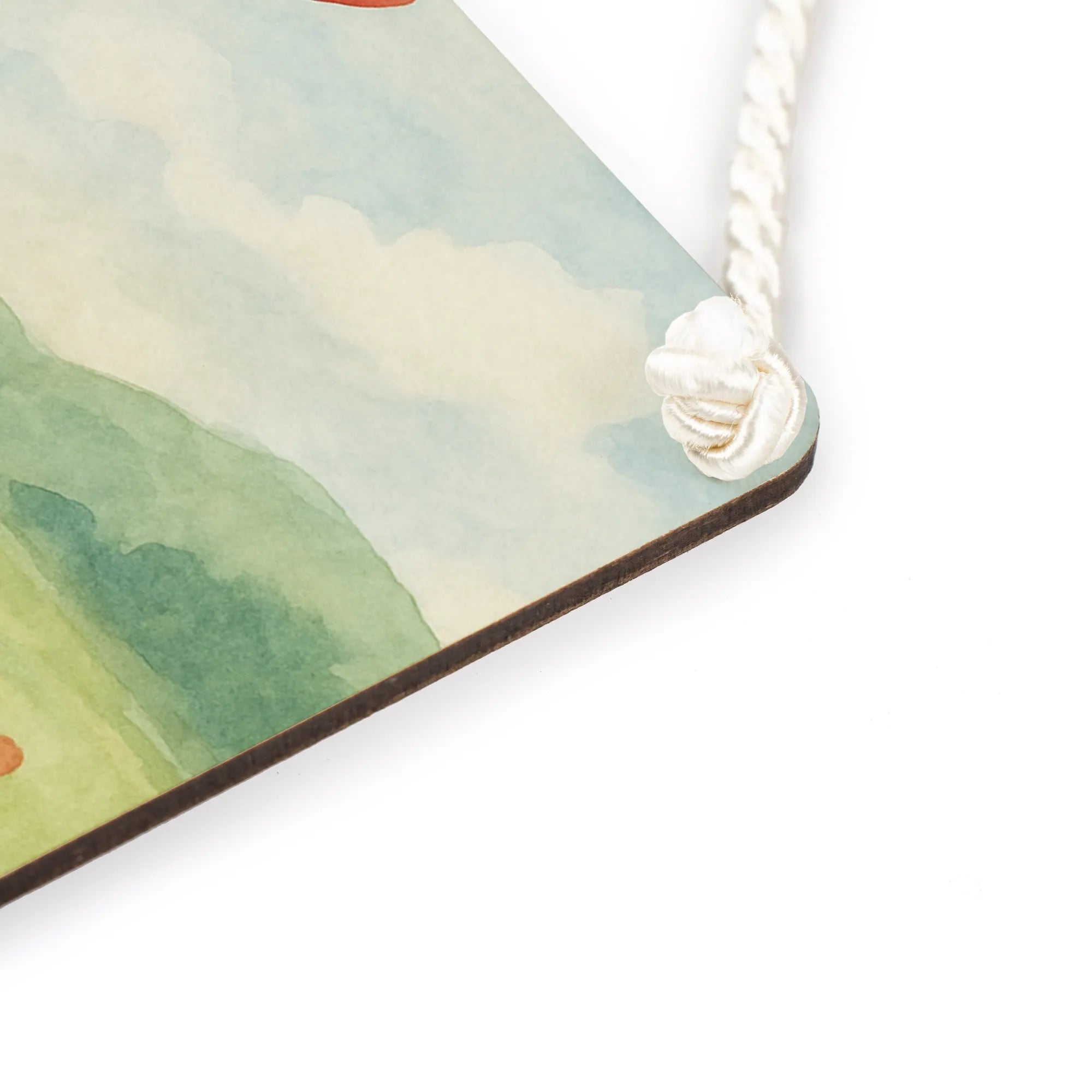 Warum dieses Schild so gut ankommt: Die Oberfläche ist beschichtet und der Druck edel und langlebig. Eine gedrehte Kordel ermöglicht dir das einfache Aufhängen ohne Werkzeug. So ist das Schild sofort einsatzbereit als Deko, Wegweiser oder liebevolle Geschenkidee.