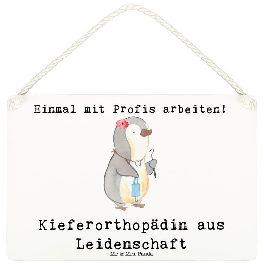 Entdecke das bezaubernde Deko Schild 'Kieferorthopädin aus Leidenschaft' von Mr. & Mrs. Panda! Dieses einzigartige Holzschild bringt einen niedlichen Pinguin in Kieferorthopädin-Kluft in Dein Zuhause oder ins Büro.