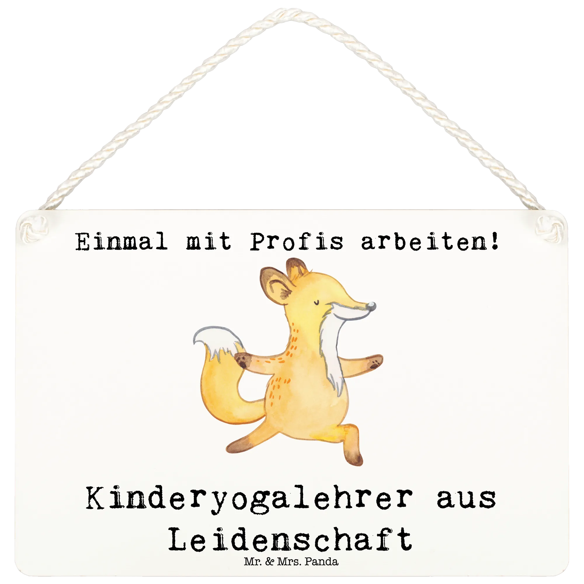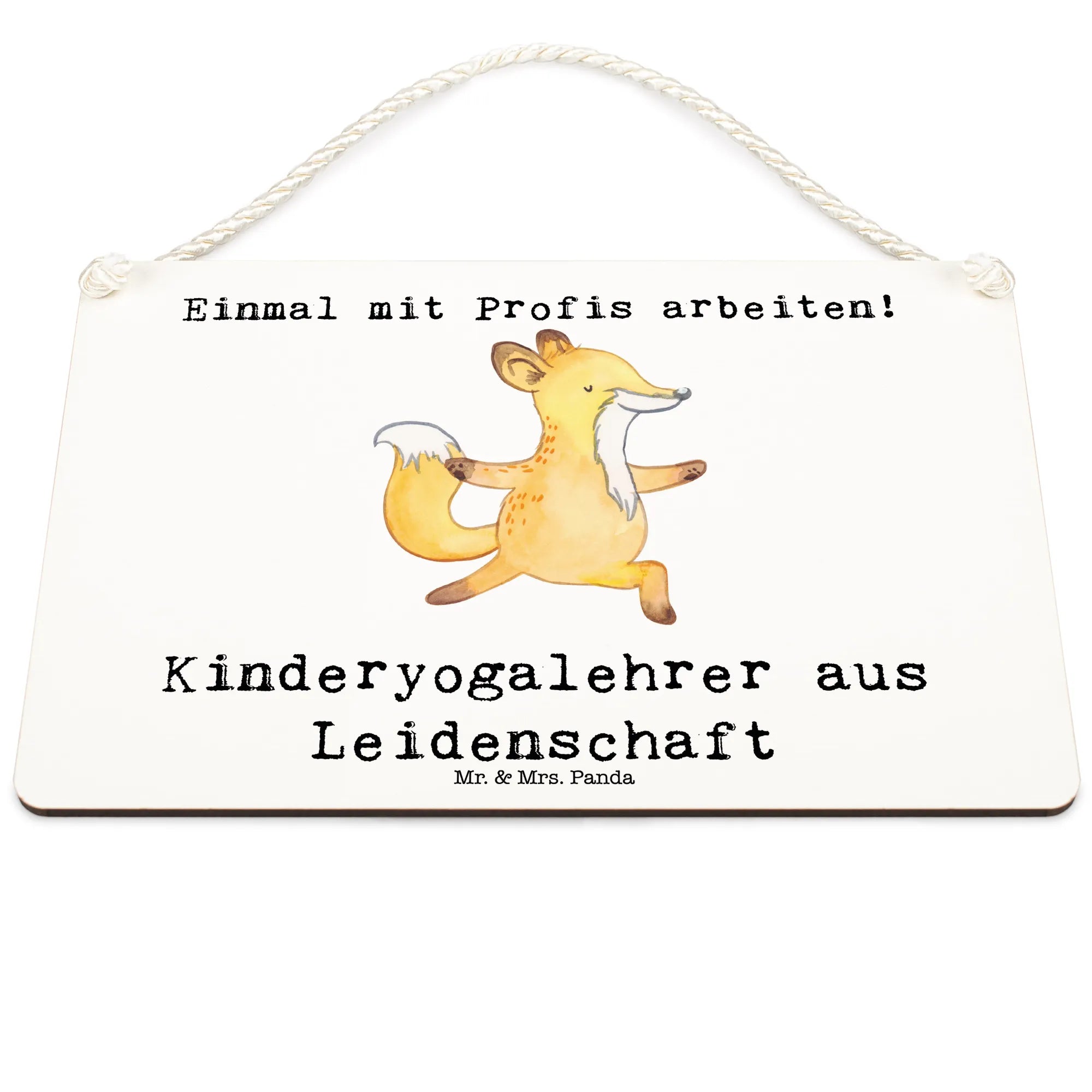 Das Schild wird aus hochwertigen, beschichteten Holzfaser gefertigt und besticht durch seine langlebige und edlen Druckqualität. Es zeigt einen niedlichen Fuchs in einer Yoga-Stellung und trägt den liebevollen Slogan "Kinderyogalehrer aus Leidenschaft". Die Kordel zum Aufhängen sorgt dafür, dass das Schild nicht nur schick aussieht, sondern auch praktisch ist.