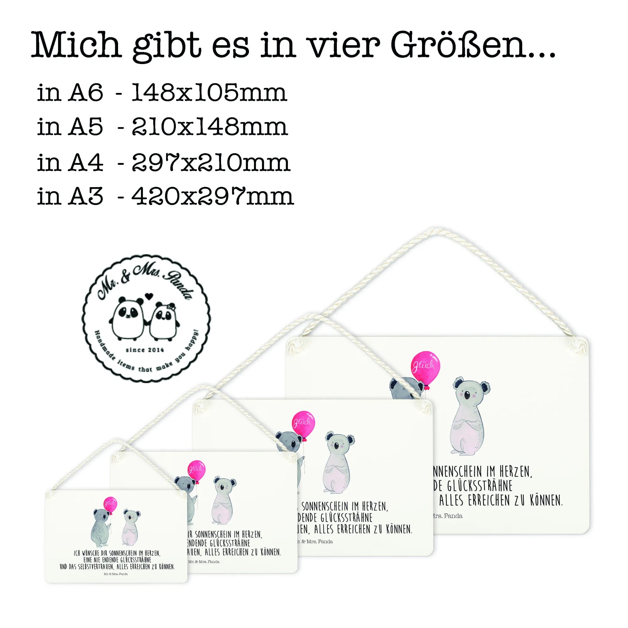 Die Koala Kollektion steht für Lebensfreude und Glück, ideal um positive Gedanken und eine fröhliche Stimmung zu verbreiten. Das Schild ist perfekt für die eigene Wandgestaltung oder als liebevolles Geschenk, das lange in Erinnerung bleibt.