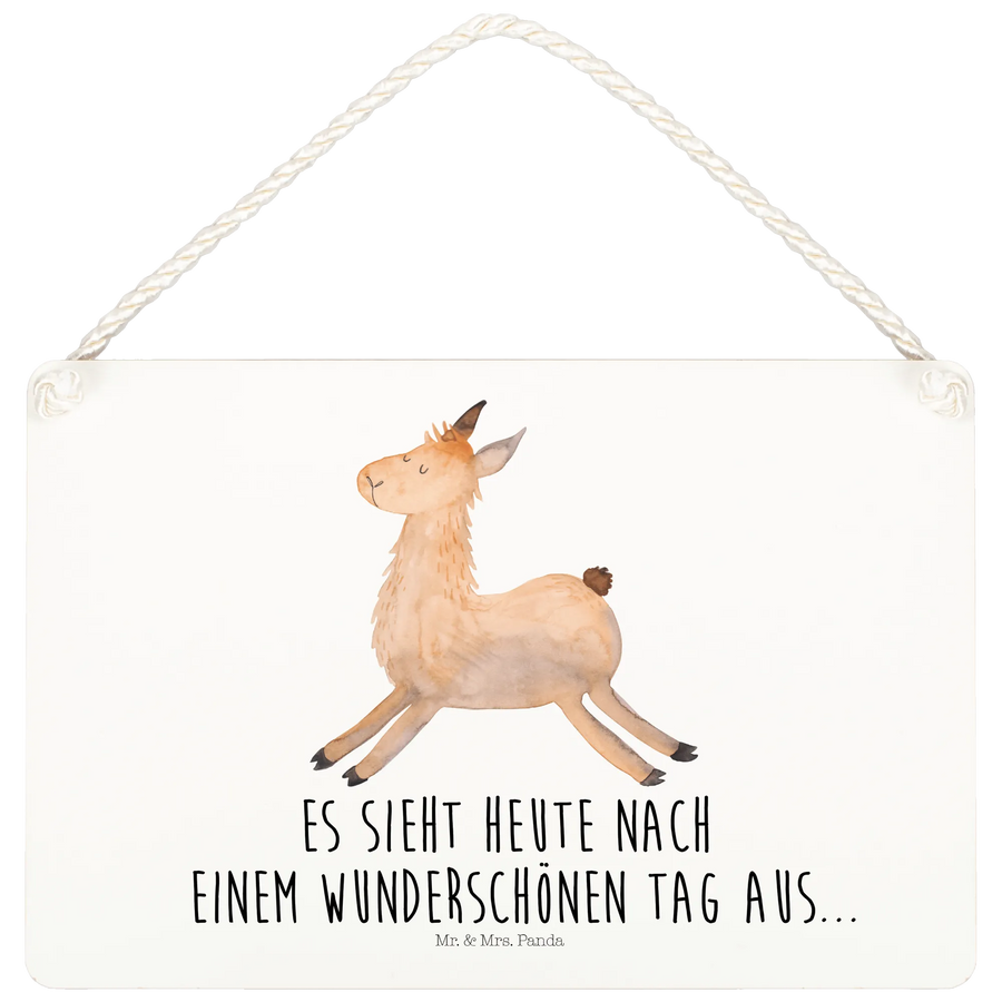 Das Deko Schild "Lama springend" aus der Lama-Kollektion von Mr. & Mrs. Panda ist das perfekte Geschenk für alle, die Freude und Lebenslust verbreiten möchten. Lamas sind für uns die Könige der Tierwelt und symbolisieren pure Coolness. Dieses Schild zeigt ein fröhliches, springendes Lama, das jedem sofort ein Lächeln ins Gesicht zaubert.