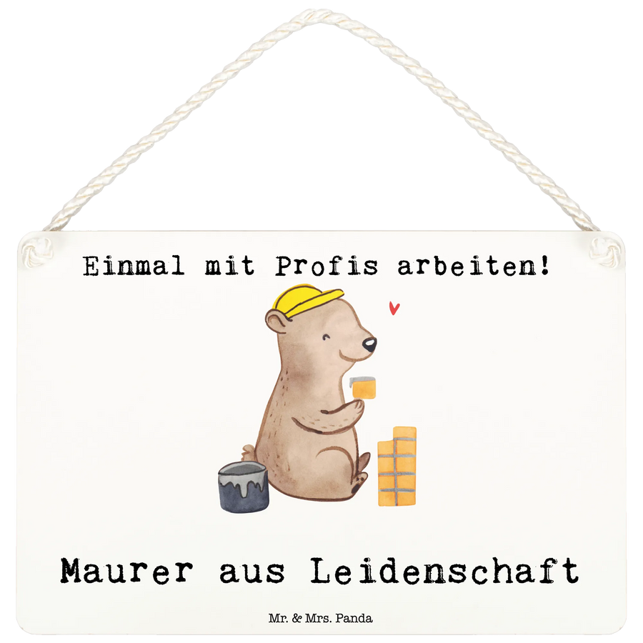 Das Deko Schild "Maurer aus Leidenschaft" von Mr. & Mrs. Panda ist das perfekte Geschenk für jeden, der im Maurerhandwerk tätig ist oder es gerade erst lernt! Egal, ob Du einem Maurermeister zum Betriebsjubiläum, einem Handwerker zur Gesellenprüfung oder einem Kollegen zum Abschied in den Ruhestand eine Freude machen möchtest, dieses schöne Holzschild ist genau das richtige. Mit dem liebevollen Motiv eines süßen Bären, der eine Mauer baut, und dem Spruch "Maurer aus Leidenschaft", bringt es ein Lächeln in jedes Zuhause oder ins Büro.