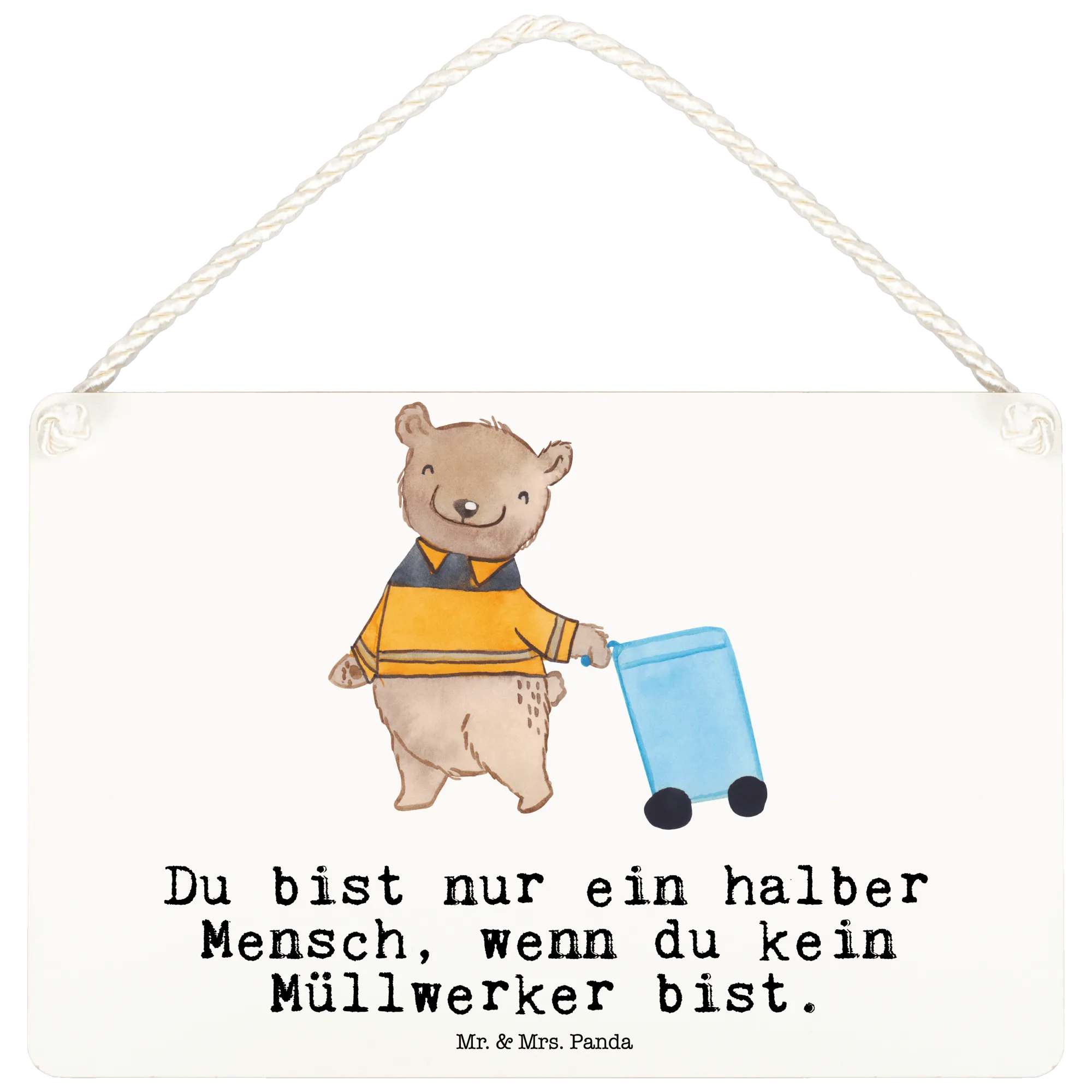 Jedes Detail dieses Schildes ist so gestaltet, dass es Herzen berührt und ein Lächeln ins Gesicht zaubert. Der Spruch "Du bist nur ein halber Mensch, wenn du kein Müllwerker bist!" unterstreicht auf humorvolle Weise die Bedeutung dieser oftmals unterschätzten Berufsgruppe.