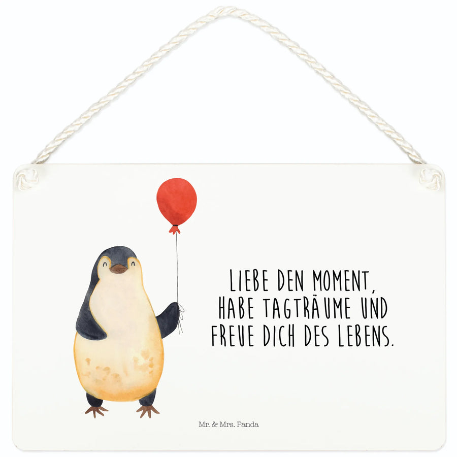 Deko Schild Pinguin Luftballon - mit Spruch - Weiß