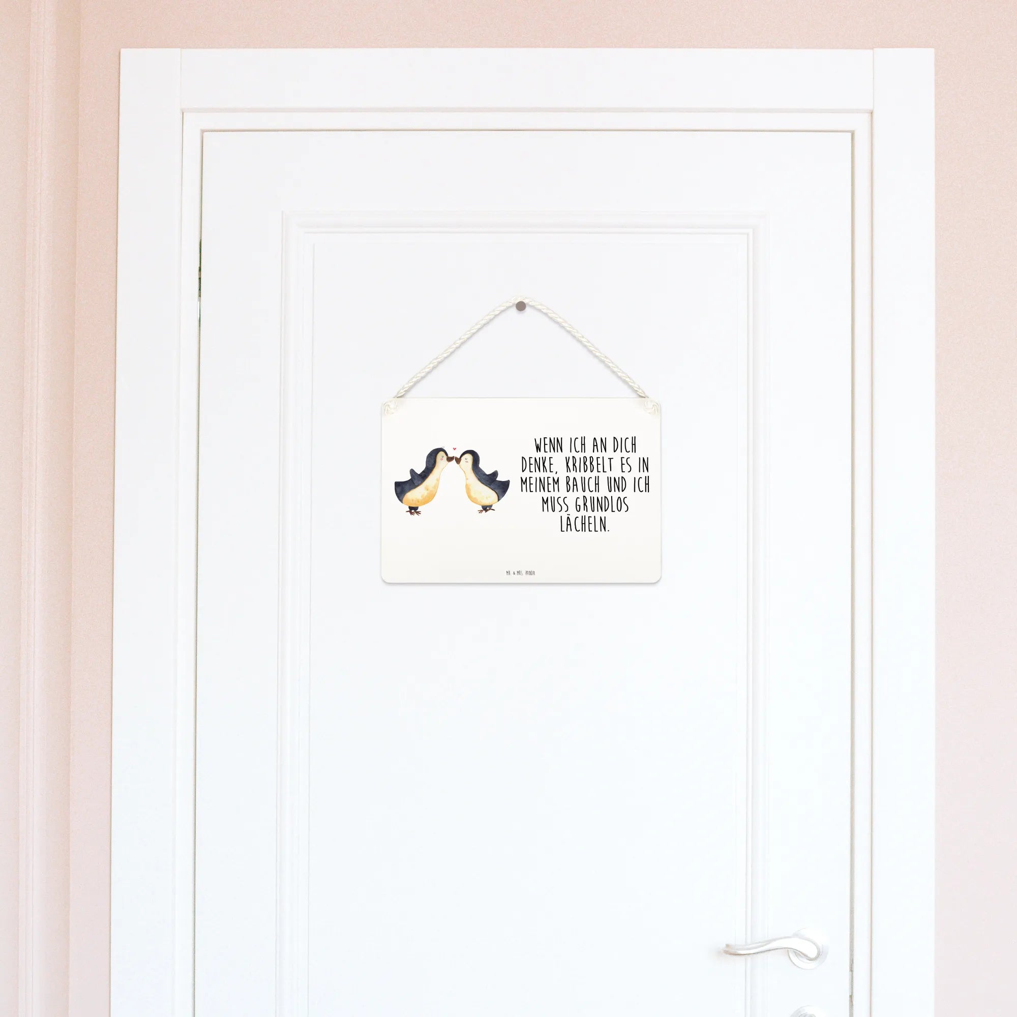 Das Deko Schild "Pinguine Kuss" aus der Kollektion Liebe von Mr. & Mrs. Panda ist das perfekte Geschenk für alle, die ihre Liebe auf eine besondere Art und Weise ausdrücken möchten. Egal, ob zum Valentinstag, zum Jahrestag oder als Liebesgeschenk für die Braut oder den Bräutigam, dieses Schild begeistert nicht nur durch sein süßes Design, sondern auch durch die liebevollen Worte. Auf dem Schild steht: "Wenn ich an dich denke, kribbelt es in meinem Bauch und ich muss grundlos lächeln." Dieser Spruch zaubert jedem ein Lächeln ins Gesicht.