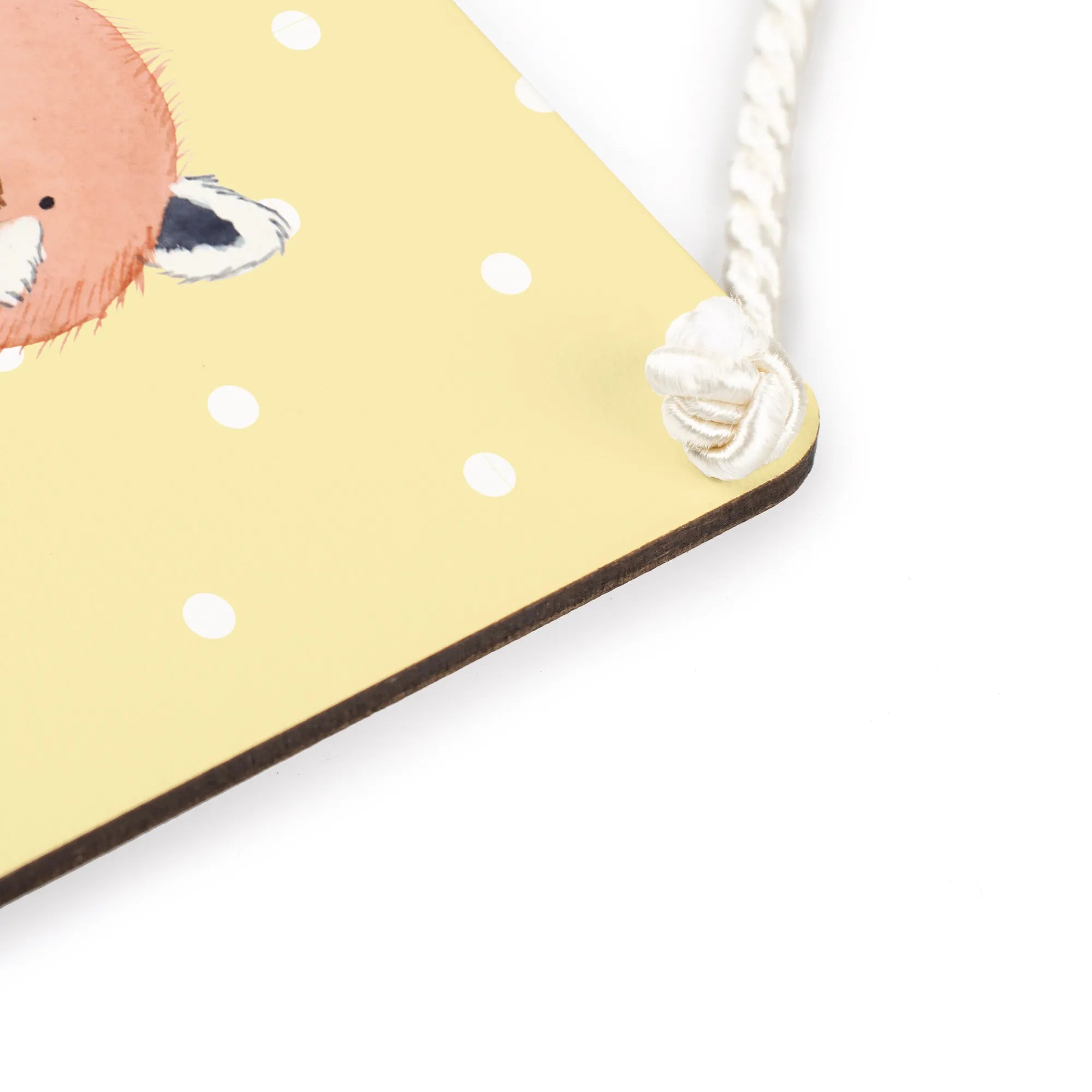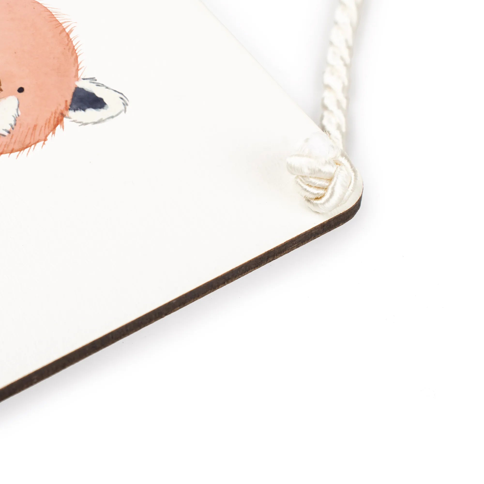Die farbenfrohe und detaillierte Illustration des roten Pandas wird garantiert zum Gesprächsthema in deinem Zuhause und sorgt für gute Laune. Unsere Produkte sind aus hochwertigem, beschichtetem MDF gefertigt, was nicht nur die Langlebigkeit garantiert, sondern auch ein edles Finish bietet. Mit der wunderschönen Kordel zur Aufhängung kannst du das Schild ganz einfach an der Wand oder Tür befestigen.