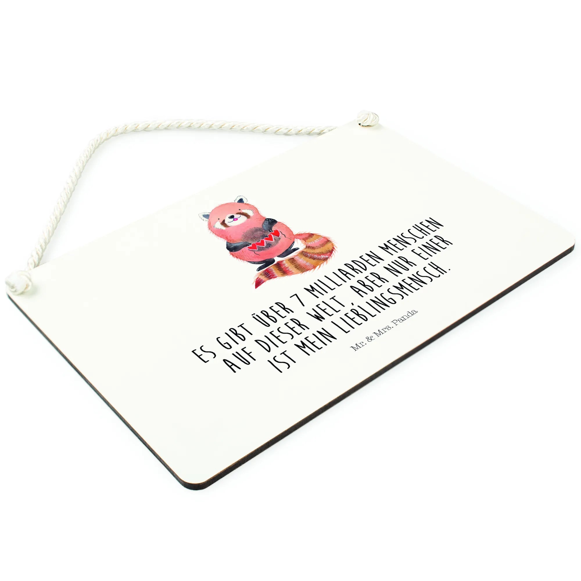 Das Deko Schild mit dem zauberhaften Motiv des Roten Pandas von Mr. & Mrs. Panda ist das perfekte Geschenk für all jene, die ihre Zuneigung und Wertschätzung auf besondere Weise ausdrücken möchten. Mit einem fröhlichen Design und dem liebevollen Slogan 'Es gibt über 7 Milliarden Menschen auf dieser Welt, aber nur einer ist mein Lieblingsmensch.', zaubert dieses Schild ein Lächeln auf jedes Gesicht und bringt Freude in jeden Raum.