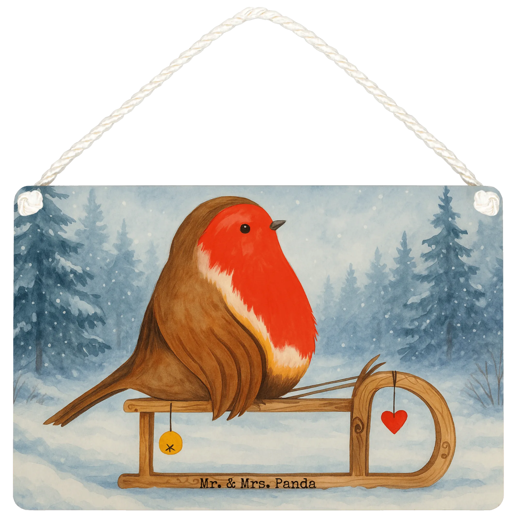 Deko Schild Rotkehlchen Schlitten Design - DIN A4 - mit Spruch